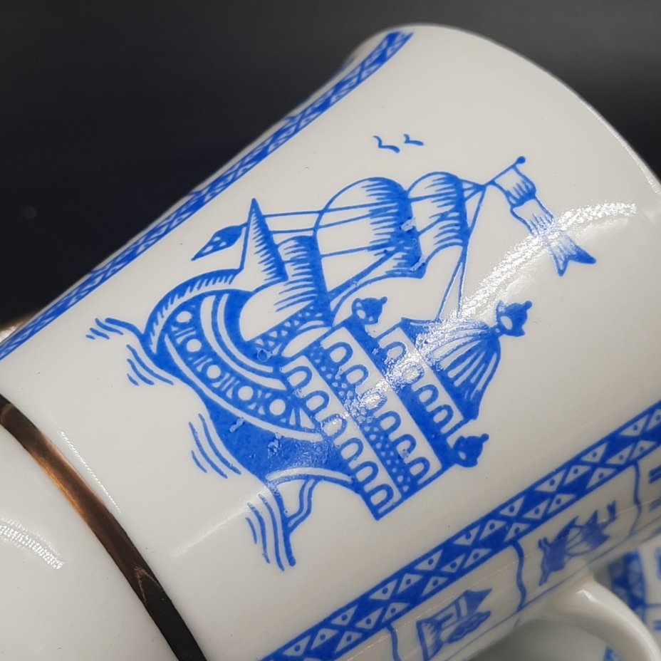 Пара кофейная "Каравелла", фарфор, деколь, золочение, Ленинградский фарфоровый завод (ЛФЗ), СССР, 1970-1992 гг.