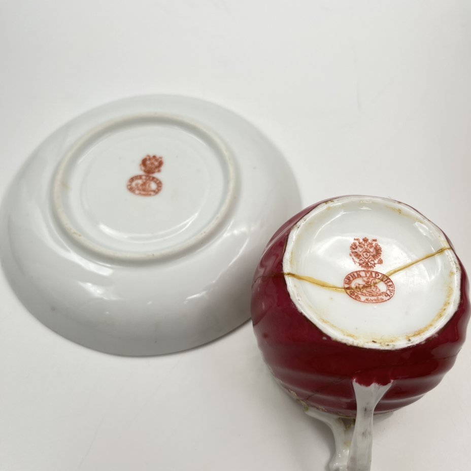 Пара чайная с цветочным декором, фарфор, деколь, крытье, золочение, Фарфоровая фабрика Гарднера, Российская империя, 1892-1917 гг.