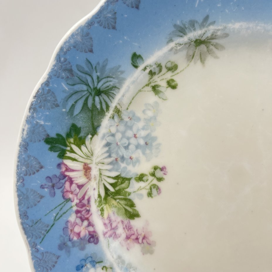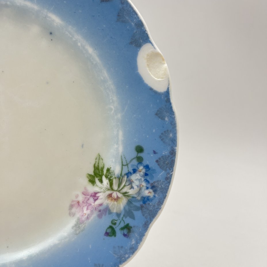 Блюдце голубого цвета с цветочным декором, фарфор, крытье, деколь, Фарфоровая фабрика Гарднера, Российская империя, 1910-1917 гг.