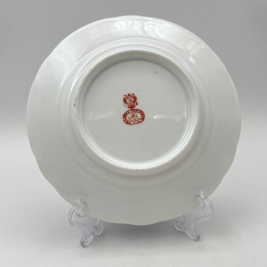 Набор из двух пирожковых тарелок, украшенных изображениями птиц, фарфор, роспись, золочение, Фарфоровая фабрика Гарднера, Российская империя, 1880-1910 гг.