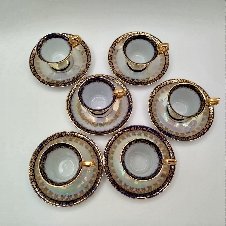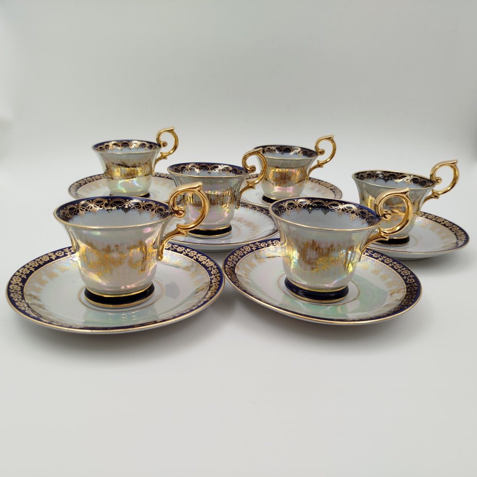 Набор кофейных пар на 6 персон, фарфор, крытье, золочение, люстр, Martinroda - Friedrich Ege & Co (Фридрих Эгер), Германия, 1950-1970 гг.