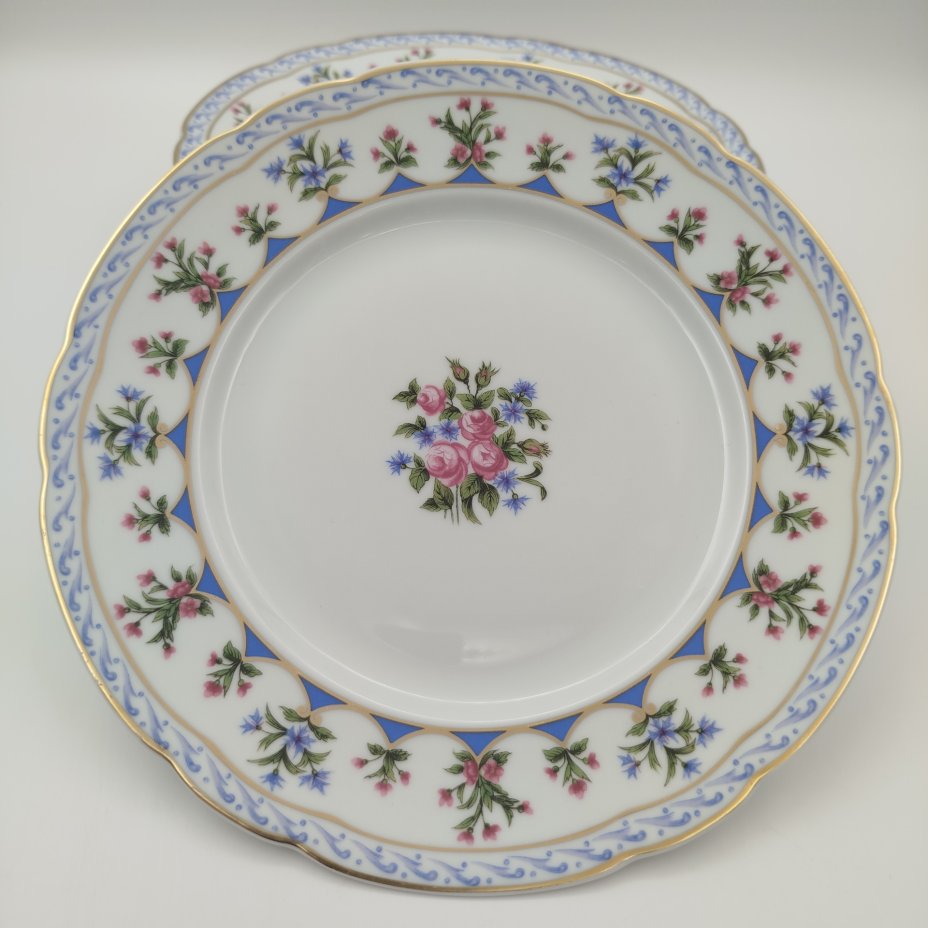 Набор из 2-х обеденных тарелок с цветочным декором, фарфор, деколь, Дмитровский фарфоровый завод (ДФЗ Вербилки), СССР, 1946-1950 гг.