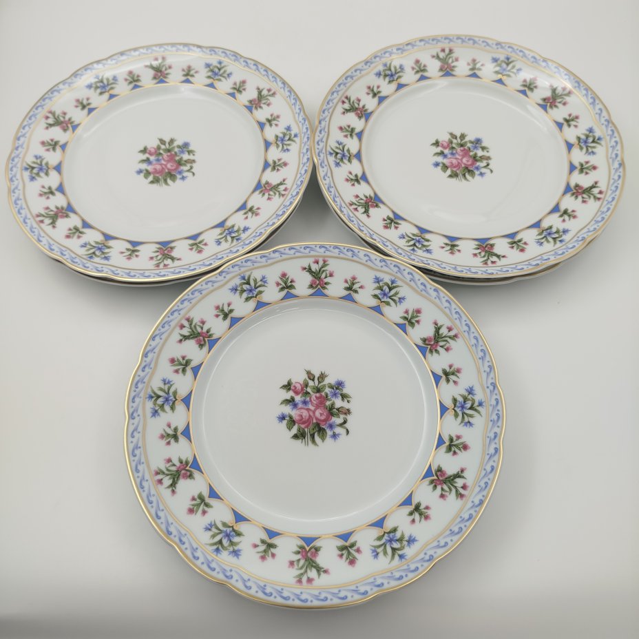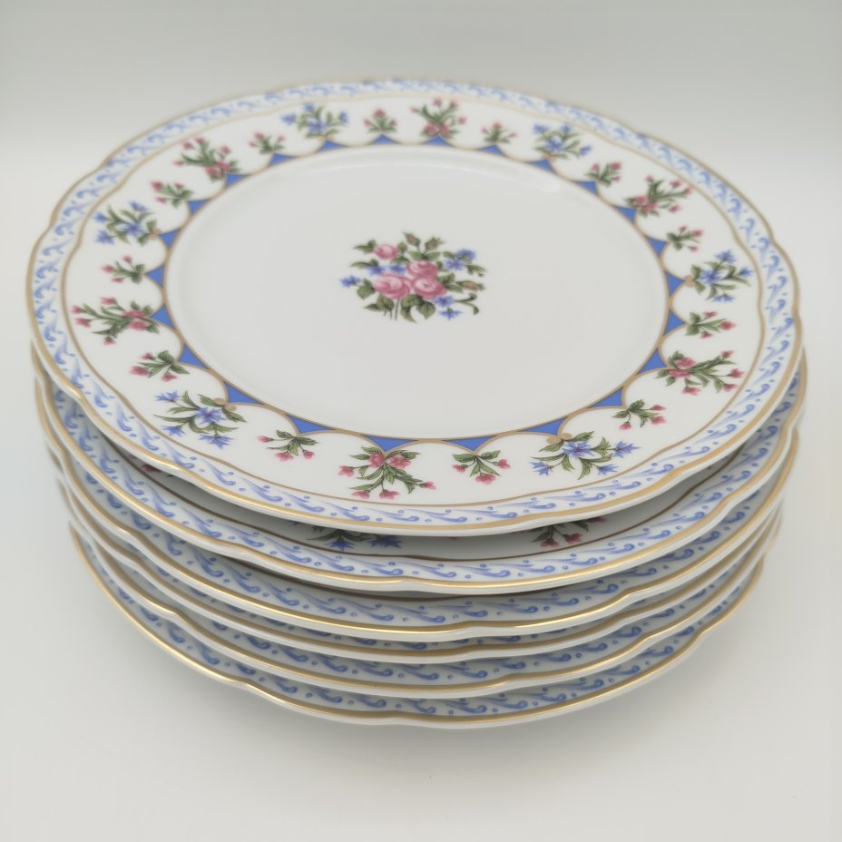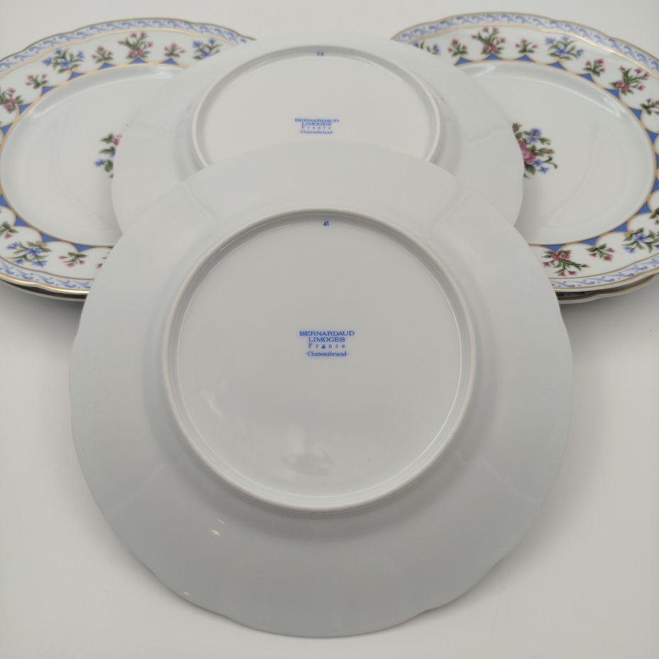 Набор тарелок с цветочным декором на 6 персон, Limoges, фарфор, деколь, золочение, Bernardaud, Франция, 1960-1980 гг.