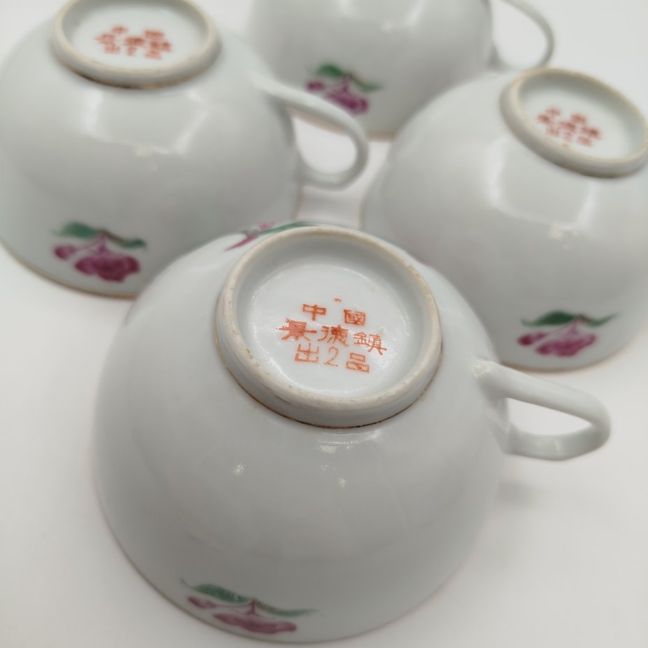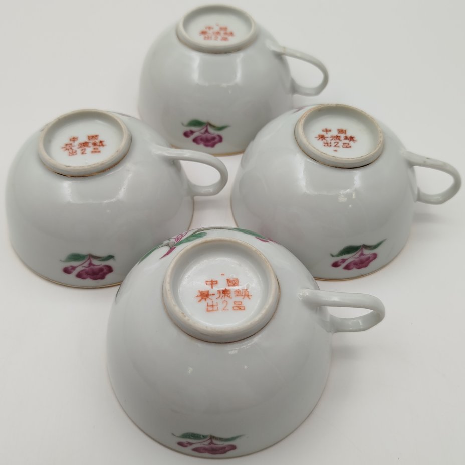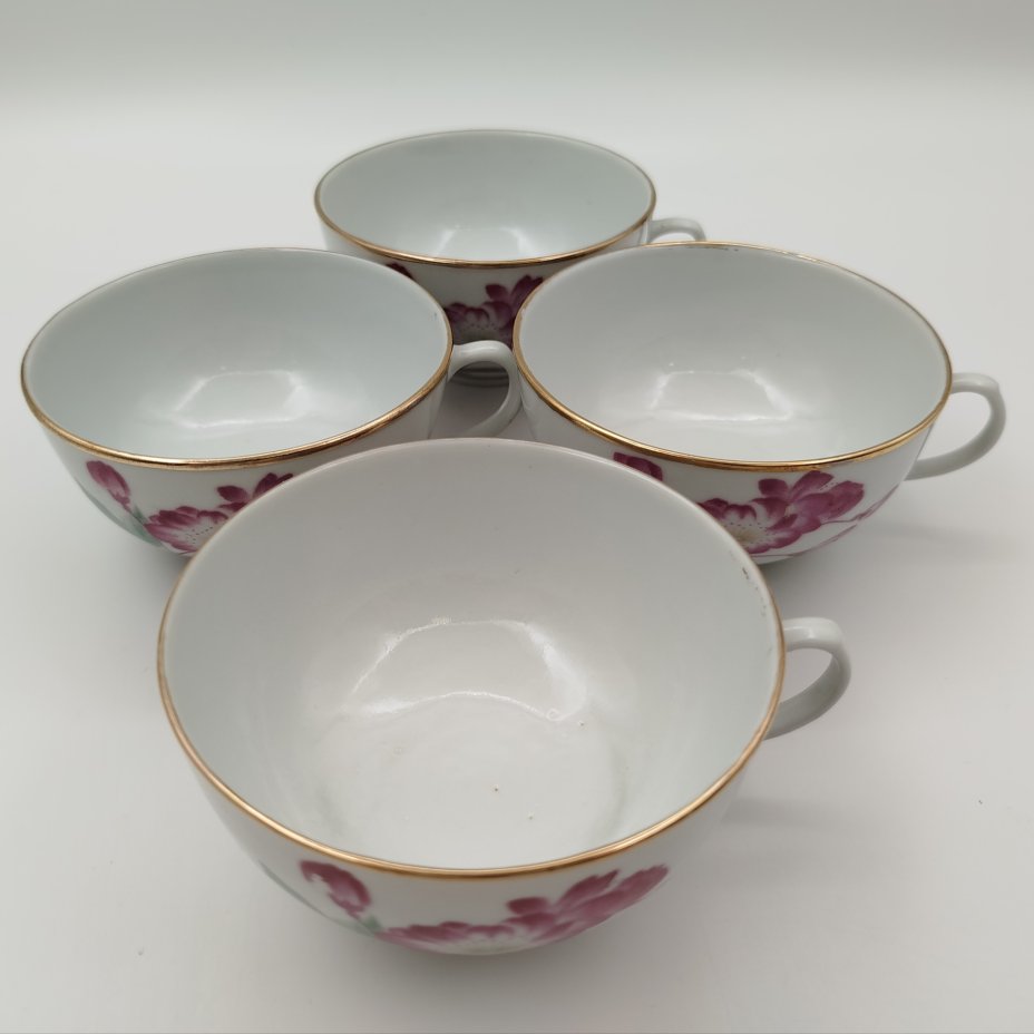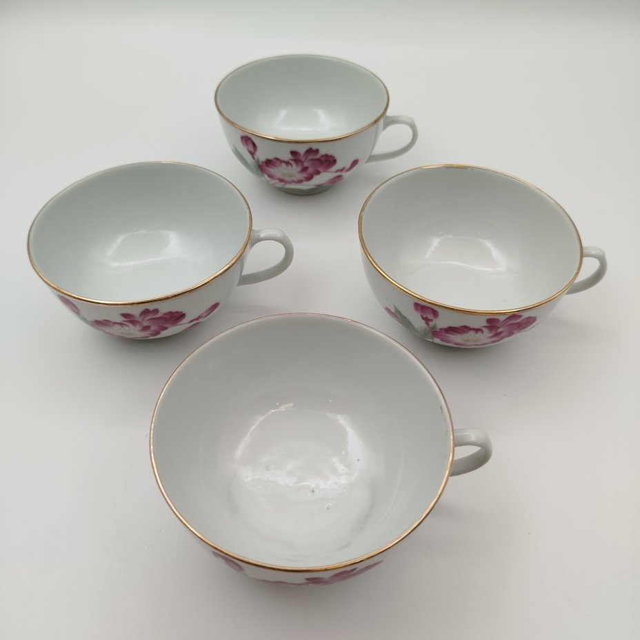 Набор из 4-х чашек "Камелия", фарфор, деколь, золочение, Фарфор Цзиндэчжэнь, Китай, 1970-1980 гг.