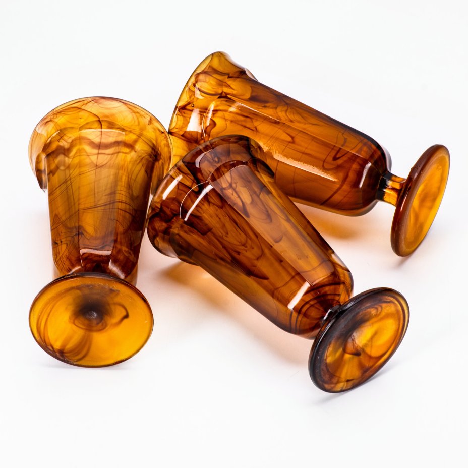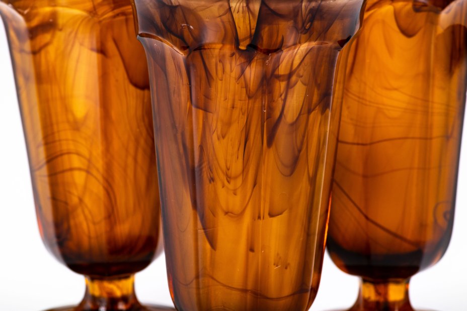 Набор из 3 бокалов "Amber Cloud", компания "George Davidson & Co", стекло, матовое, пресс, Великобритания, 1920-1930 гг.