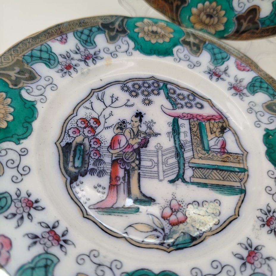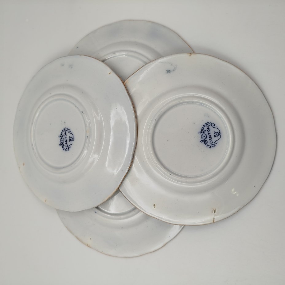 Набор из 4-х пирожковых (закусочных) тарелок в восточном стиле, серия "Canton", фаянс, деколь с подрисовкой, люстр, Boch Freres Keramis, Бельгия, 1894-1919 гг.