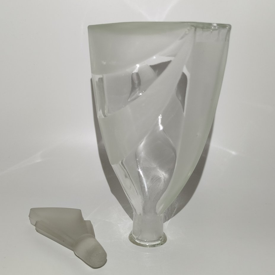 Графин необычной геометрической формы в стиле Art Deco, стекло, матирование, Стеклозавод «Неман», Польша, 1925-1939 гг.