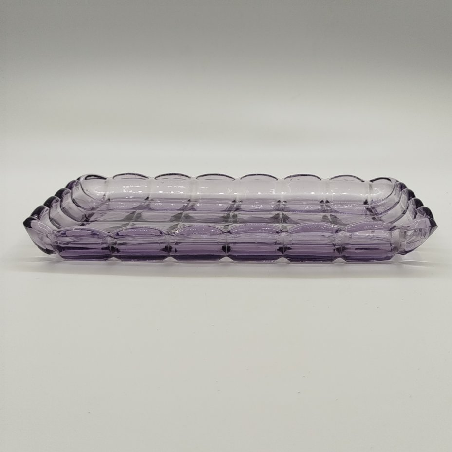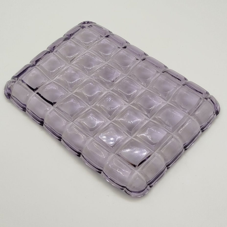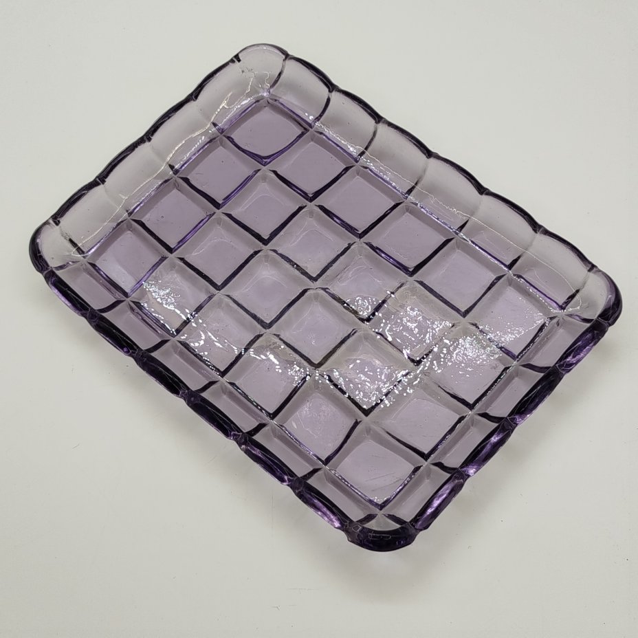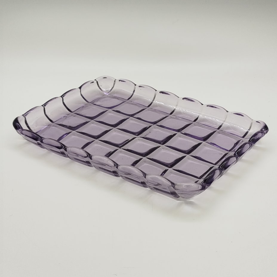 Поднос фиолетового оттенка с декором в виде квадратов, стекло, пресс, Стеклозавод «Неман», СССР, 1940-1960 гг.