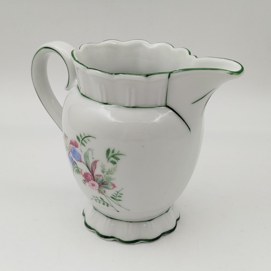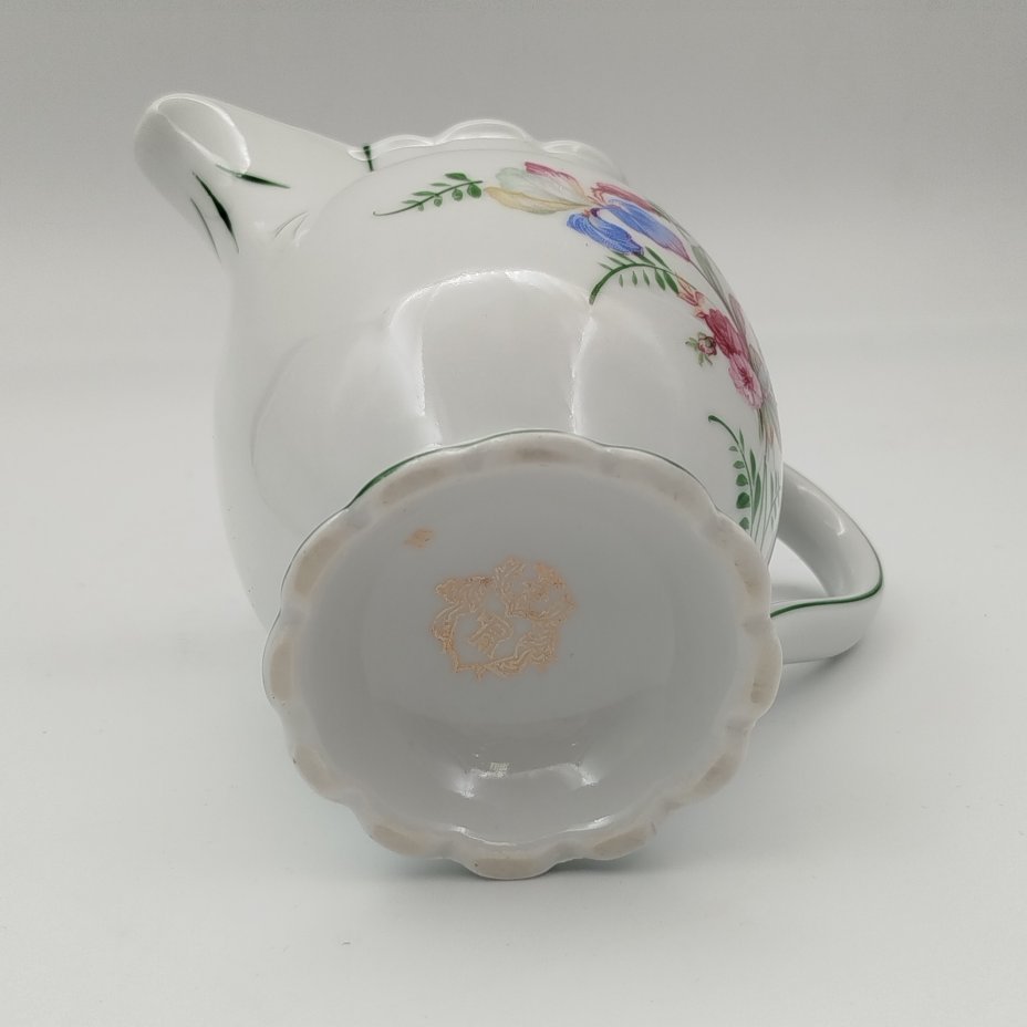 Молочник с цветочным декором и зеленой каймой, фарфор, деколь, подрисовка, Roschutz, ГДР, 1940-1968 гг.