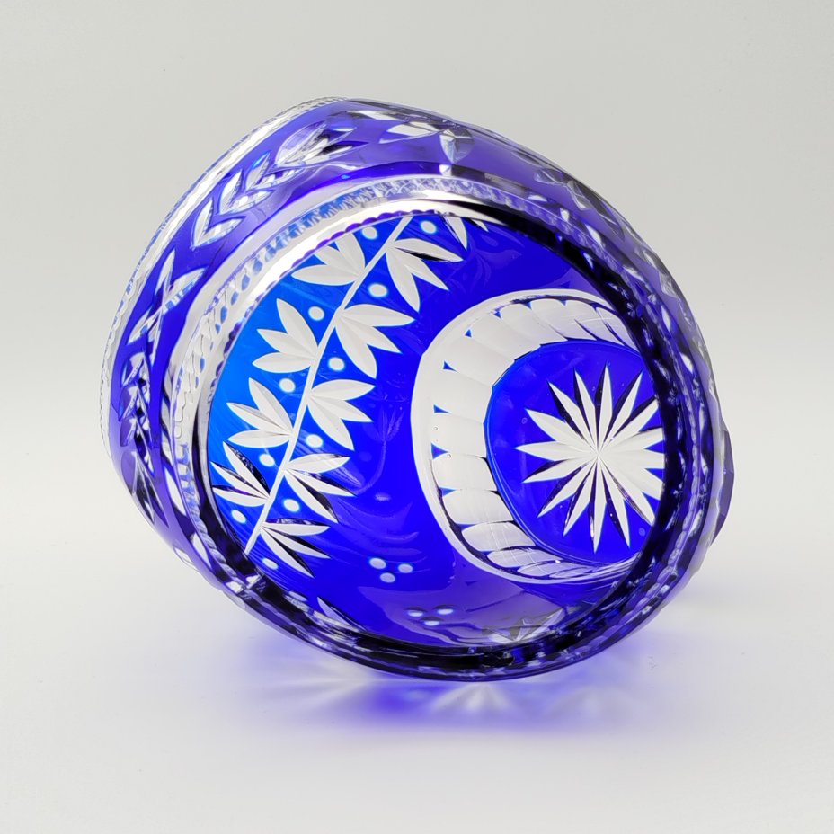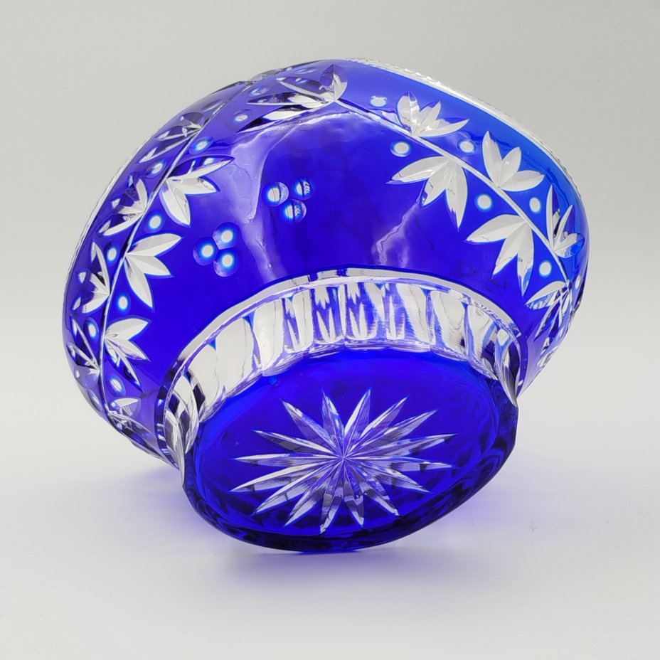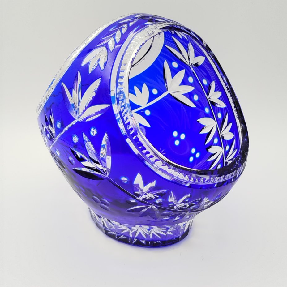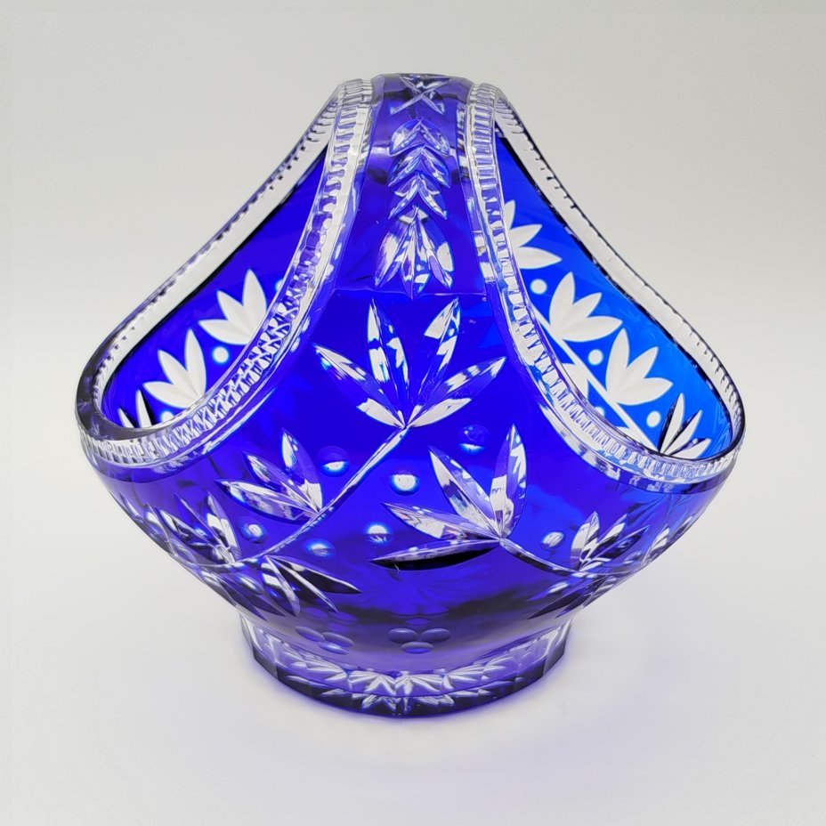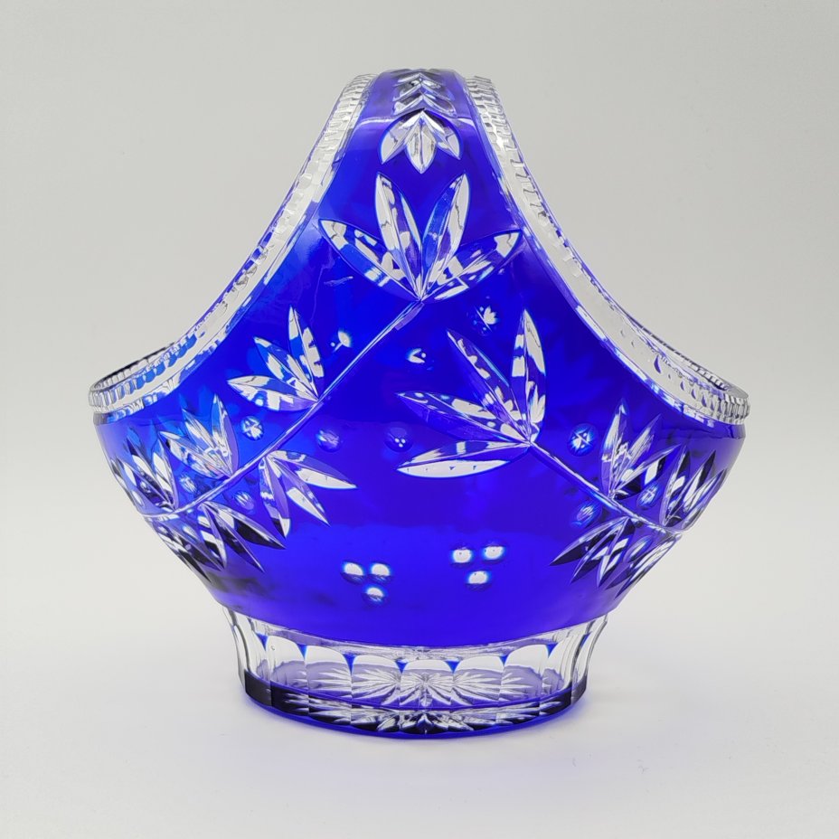 Конфетница в форме корзинки с растительным декором, хрусталь, нацвет, алмазная грань, СССР, 1970-1990 гг.