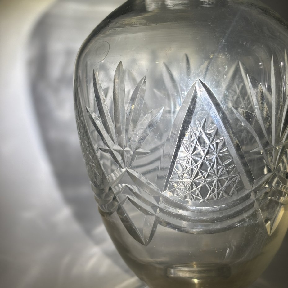 Штоф (графин) с резным декором, стекло, резьба, СССР, 1950-1970 гг.