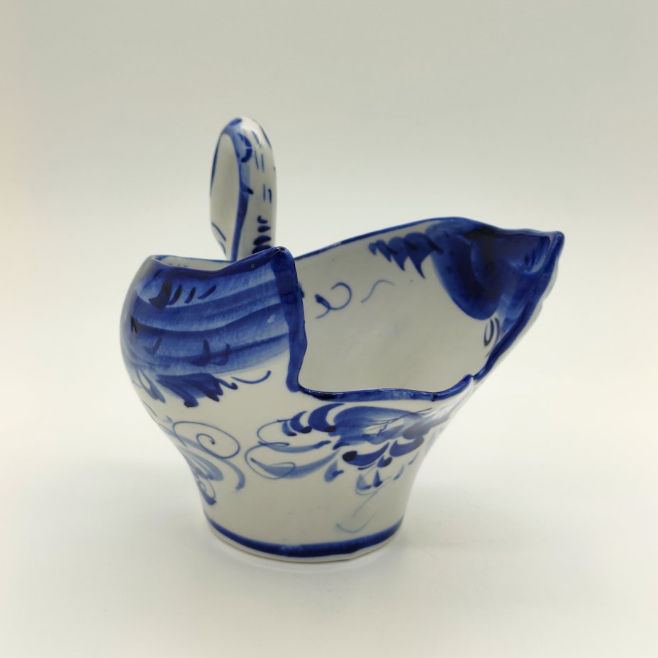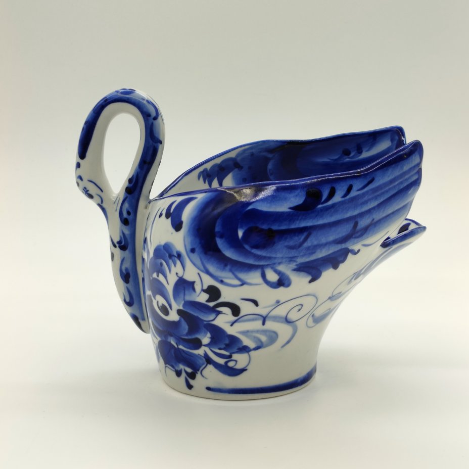 Конфетница "Лебедь", украшенная цветочным декором, фарфор, роспись, Шекма-Гжель (Шевлягинский завод специальной керамики), Российская Федерация, 1991-2015 гг.