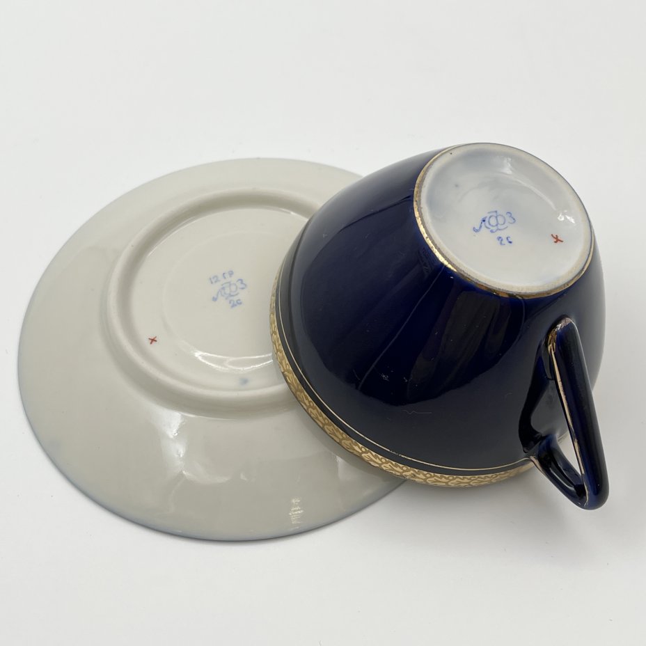 Пара кофейная, фарфор, крытье кобальтом, золочение, Ленинградский фарфоровый завод (ЛФЗ), СССР, 1970-1990 гг.