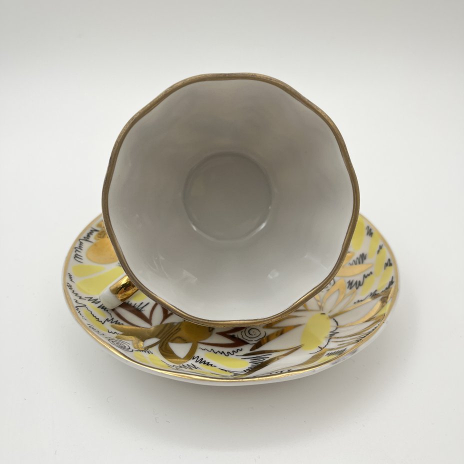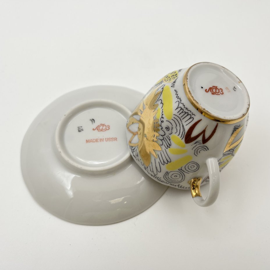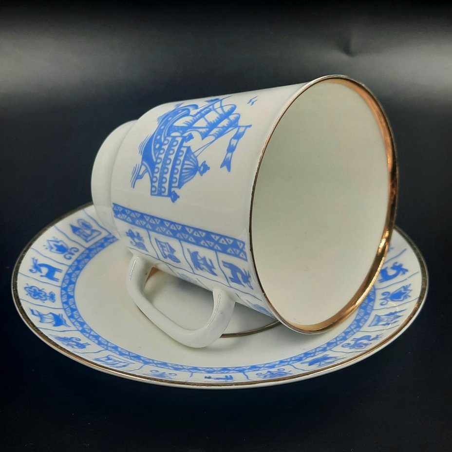 Пара кофейная "Каравелла", фарфор, деколь, золочение, Ленинградский фарфоровый завод (ЛФЗ), СССР, 1970-1992 гг.