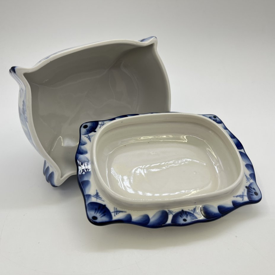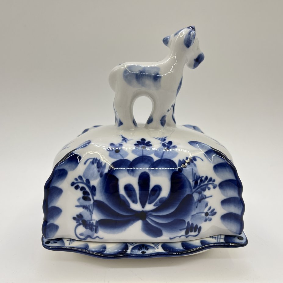 Соусник в виде барана, украшенный цветочным орнаментом, Гжель, фарфор, роспись, Россия, 1991-2010 гг.
