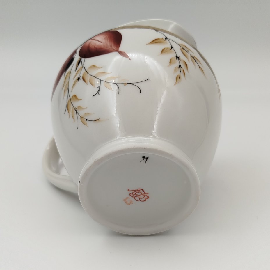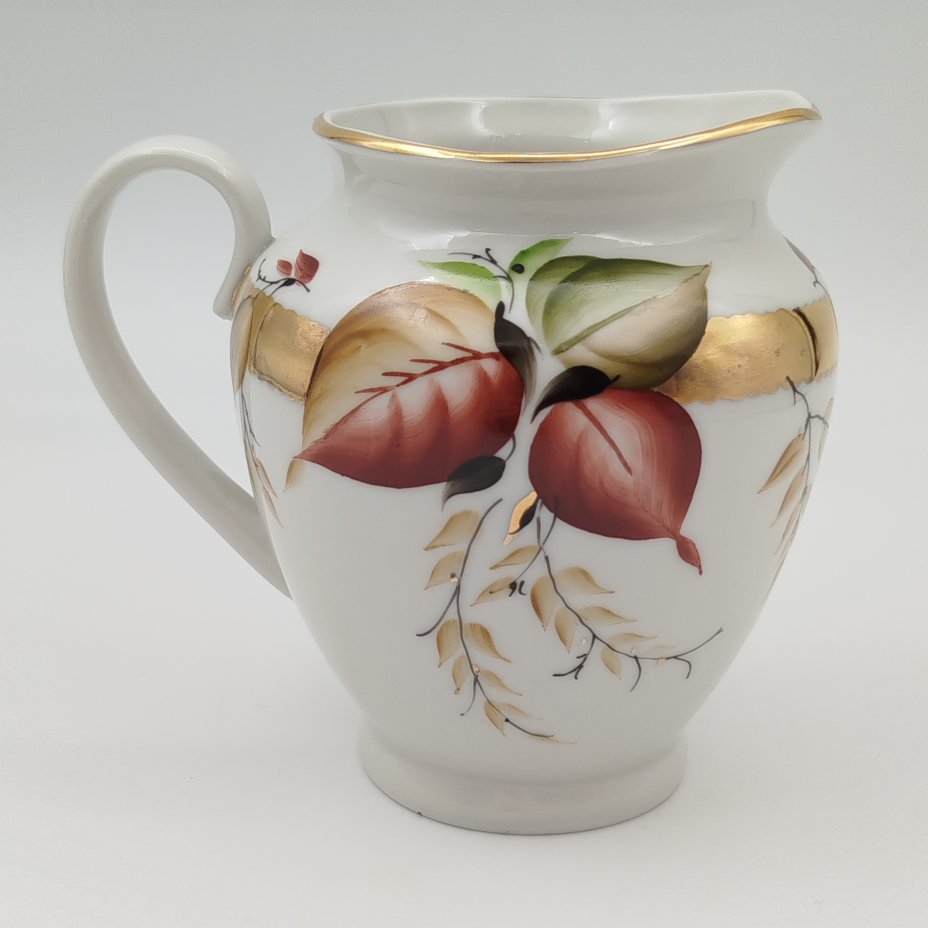 Молочник из сервиза "Сентябрь", автор росписи Семёнова А.Н., форма "Весенняя", автор формы Яковлева С.Е., фарфор, роспись, золочение, Ленинградский фарфоровый завод (ЛФЗ), СССР, 1970-1991 гг.
