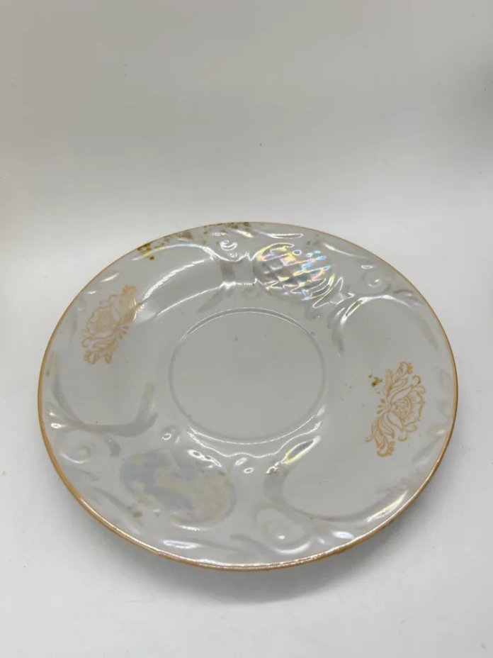 Набор из 6-ти блюдец с флоральным декором, фарфор, люстр, золочение, Сумский фарфоровый завод, СССР, 1974-1991 гг.