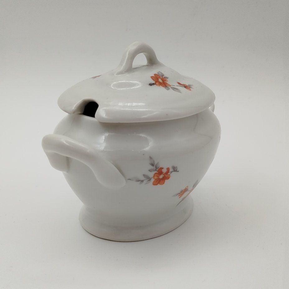 Молочник, украшенный цветочным декором, фарфор, деколь, Дмитровский фарфоровый завод (ДФЗ Вербилки), СССР, 1953-1965 гг.