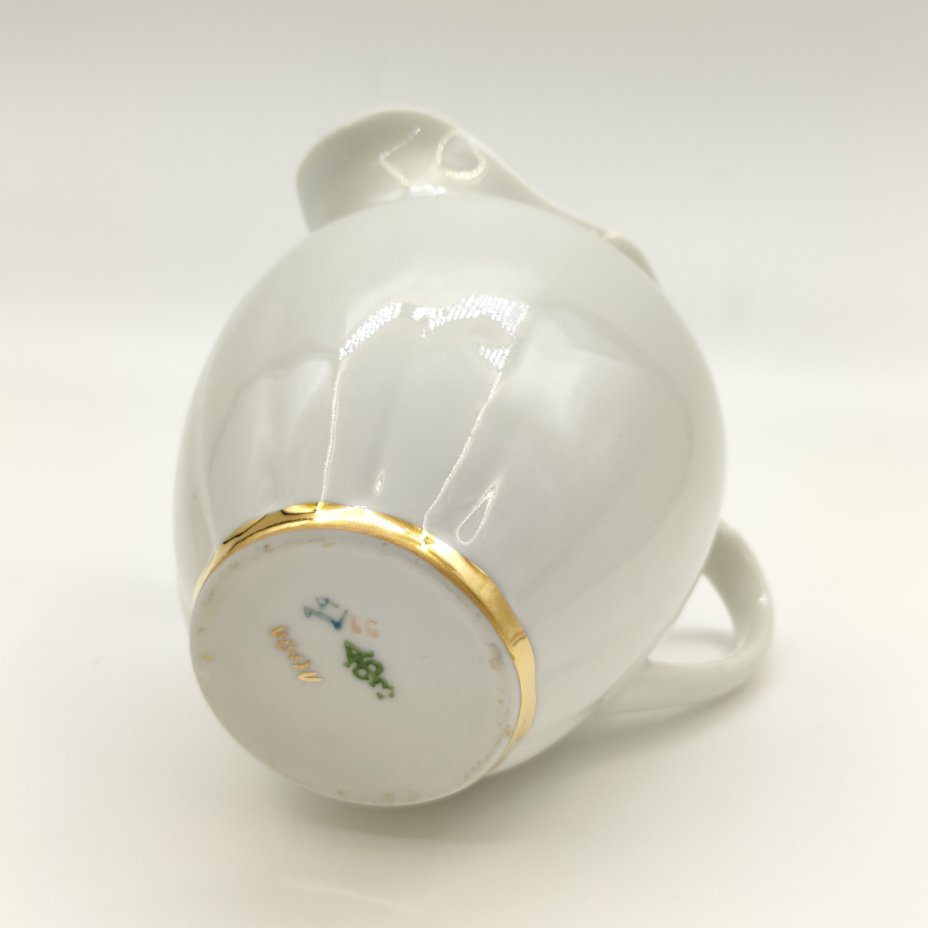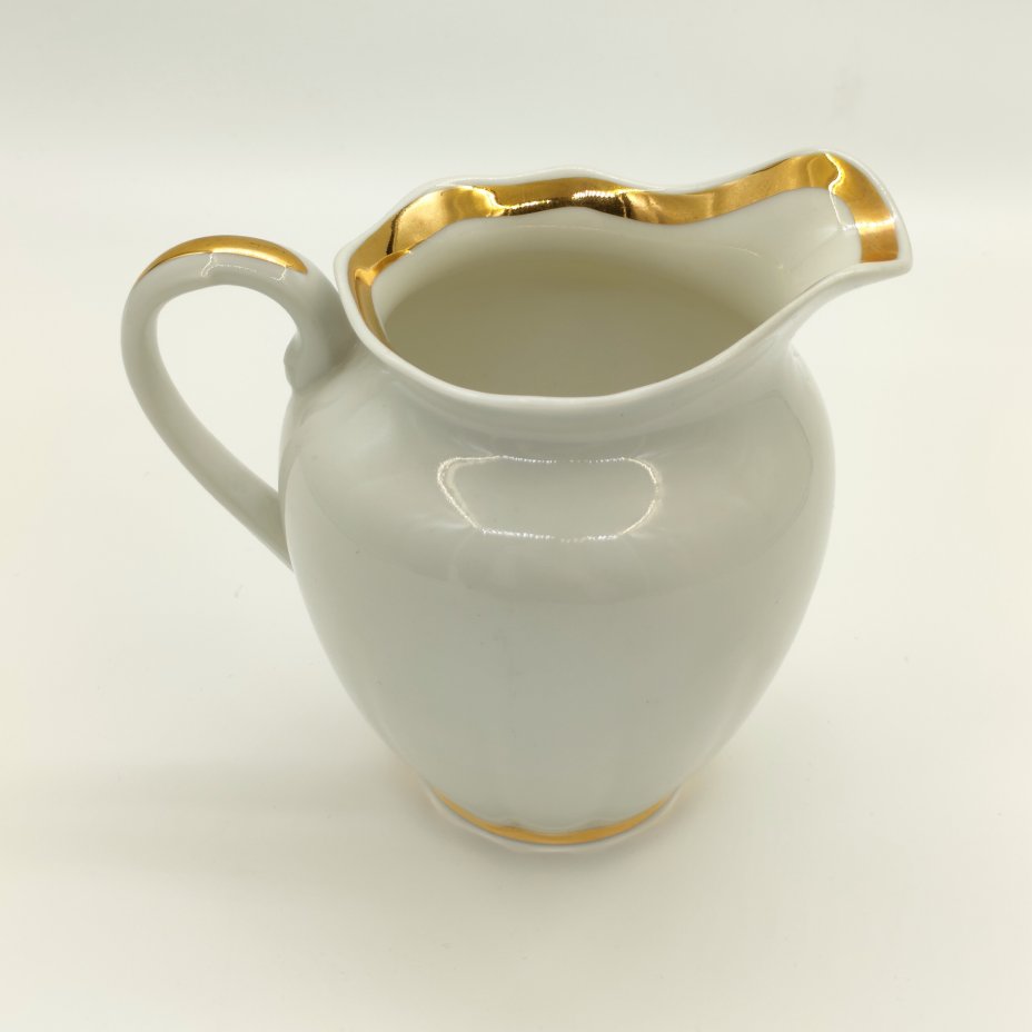 Молочник с лаконичным декором, фарфор, золочение, Дмитровский фарфоровый завод (ДФЗ Вербилки), СССР, 1954-1965 гг.