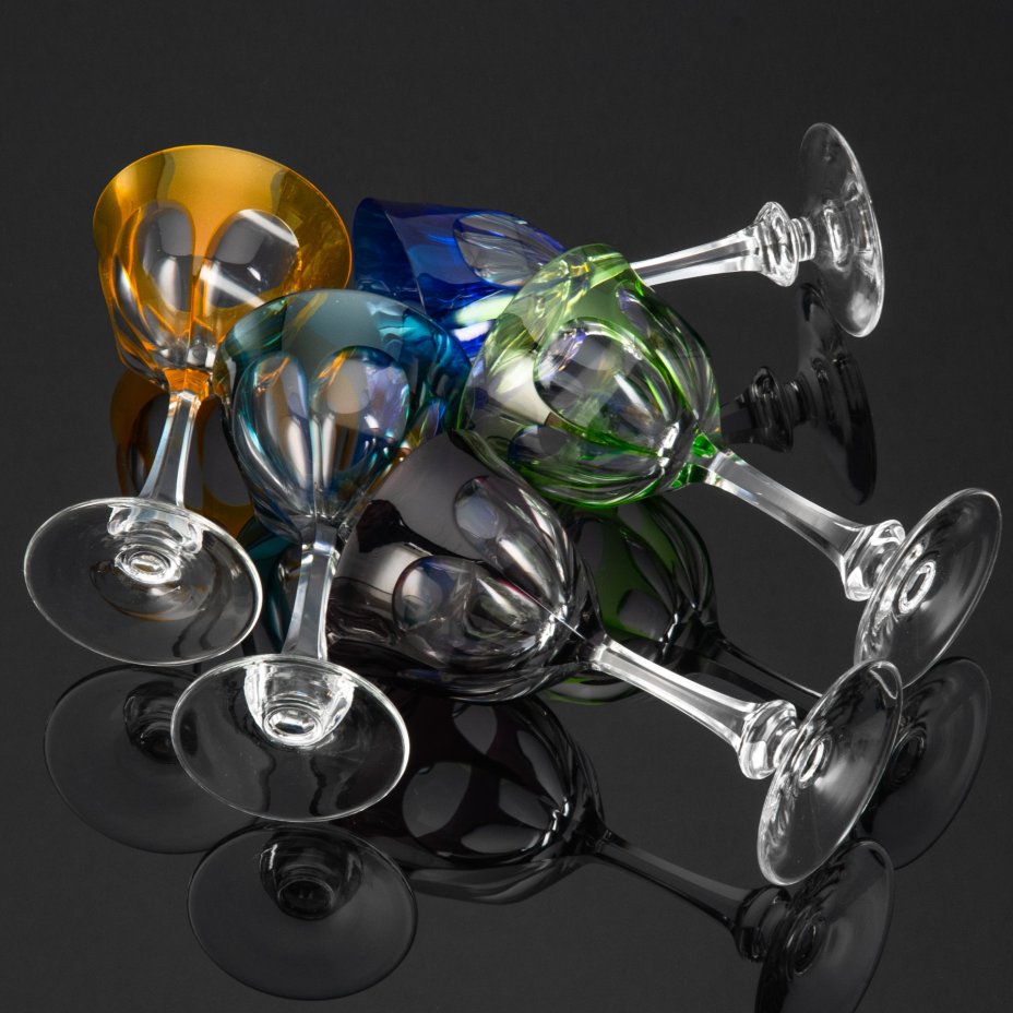 Набор из 5 бокалов для вина "Lady Hamilton", хрусталь, нацвет, Moser (Мозер), Чехия, Чехословакия, 1970-1990 гг.