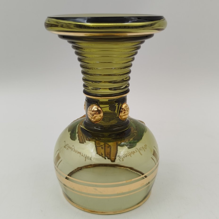 Рёмер для вина на толстой ножке c надписью "Cochem Mosel" (Замок Кохем на реке Мозель), цветное стекло, золочение, Германия, 1950-1980 гг.