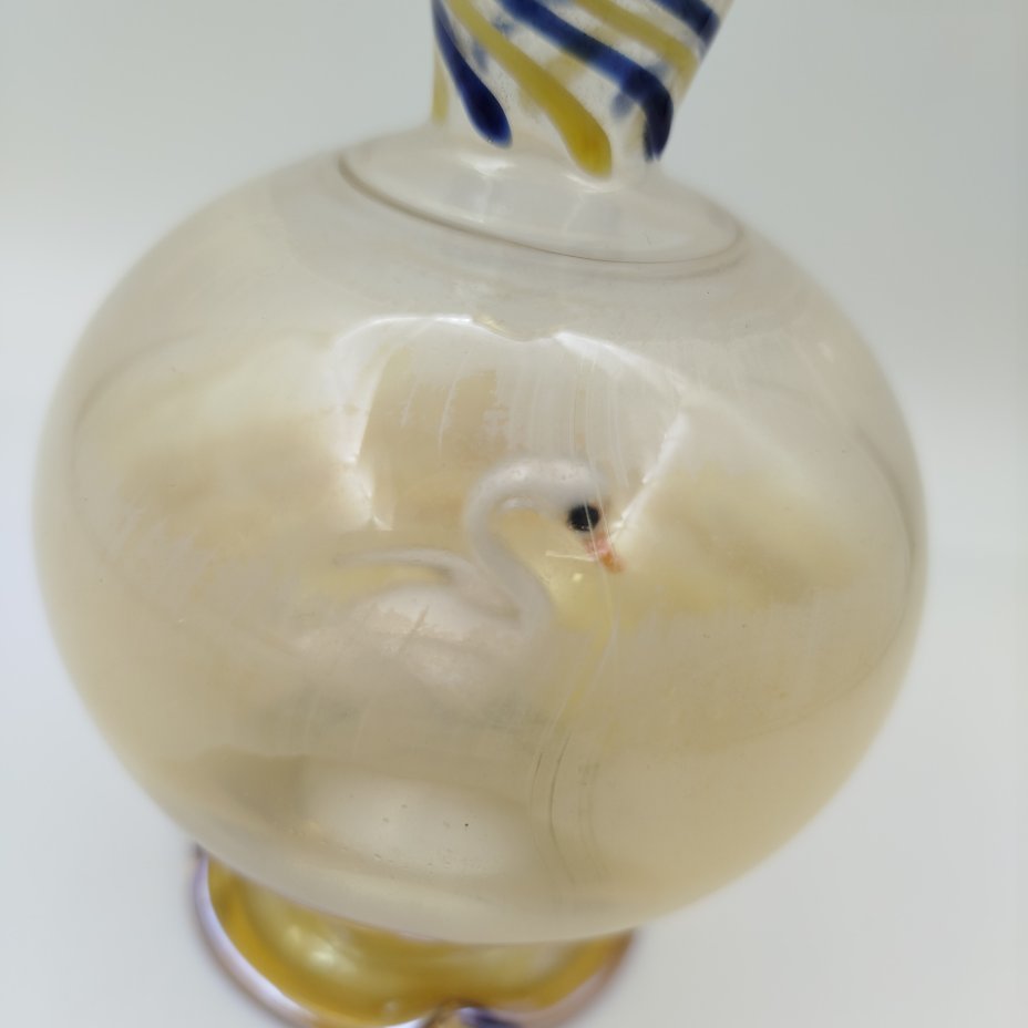 Графин (штоф) "Лебедь" с фигуркой внутри, Ламповый завод, цветное стекло, выдувание, люстр, СССР, 1960-1980 гг.