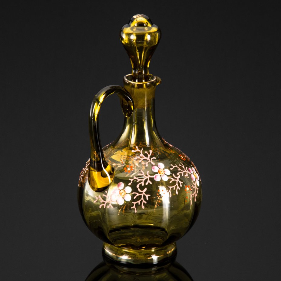 [Редкость] Чайница с крышкой и цветочным декором, стекло, роспись эмалевыми красками, Товарищество «Василий Перлов с сыновьями», Российская империя, 1880-1890 гг.