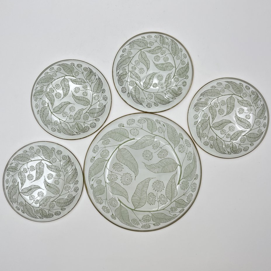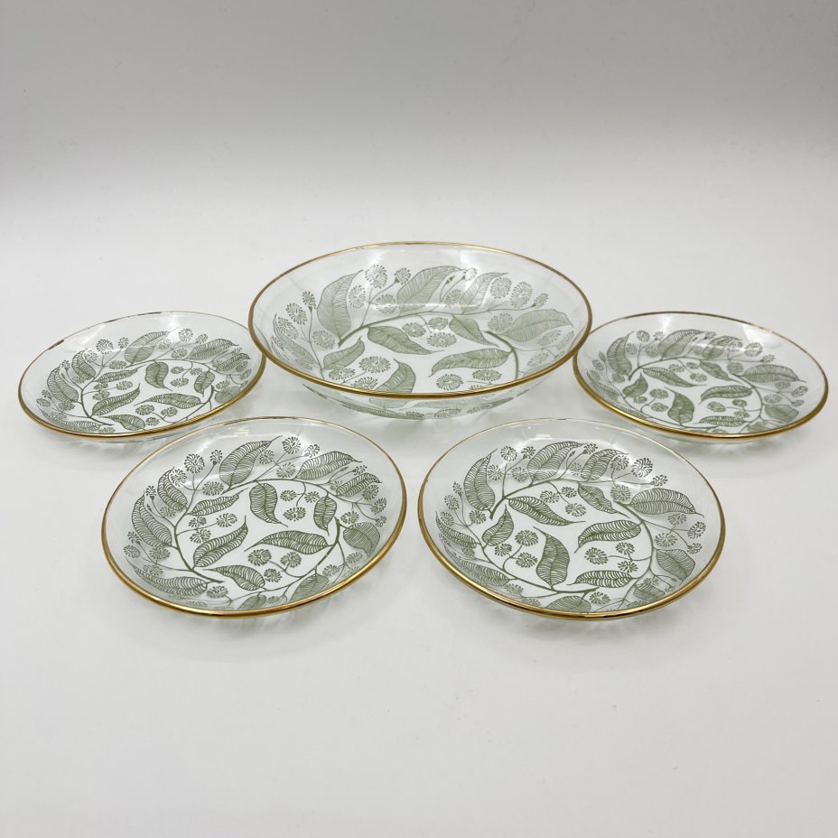 Набор для подачи десерта (вазочка и 4 розетки) с растительным декором, стекло, металл, золочение, Российская Федерация, 1995-2015 гг.