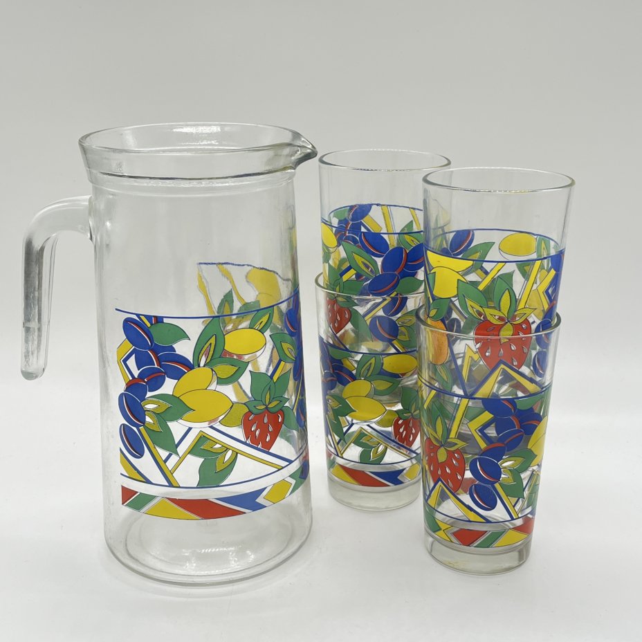 Набор из графина и 4 кружек, стекло, гутная техника, Львовская керамико-скульптурная фабрика (ЛКСФ), СССР, 1960-1980 гг.