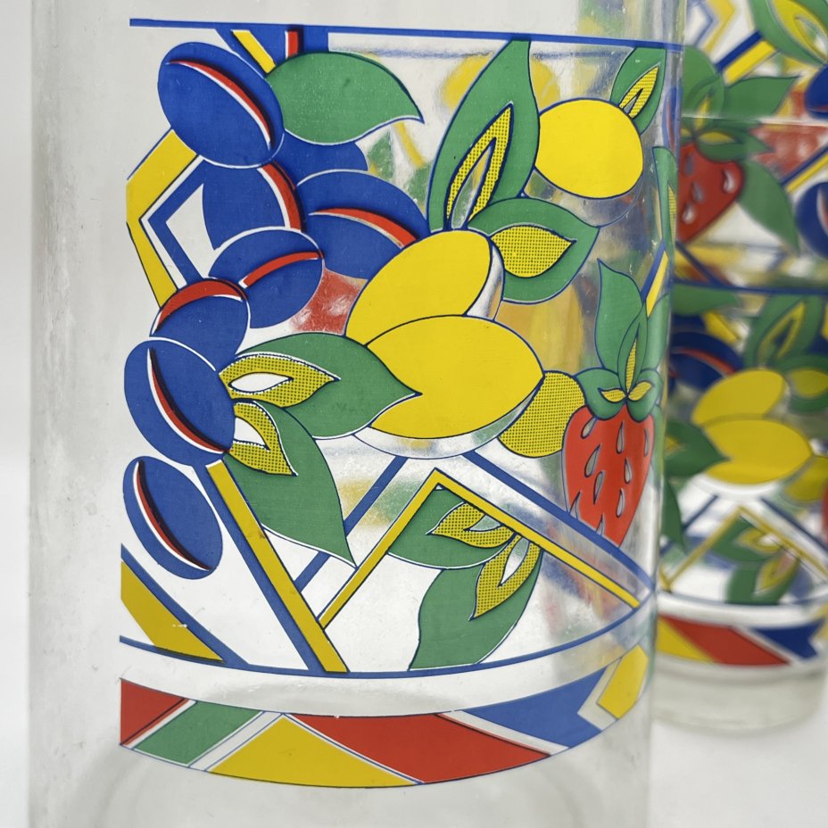 Набор для прохладительных напитков (кувшин и 3 стакана), украшенный изображением зимнего пейзажа, стекло, роспись, Европа, 1980-2000 гг.