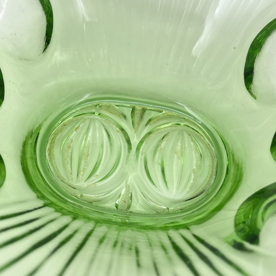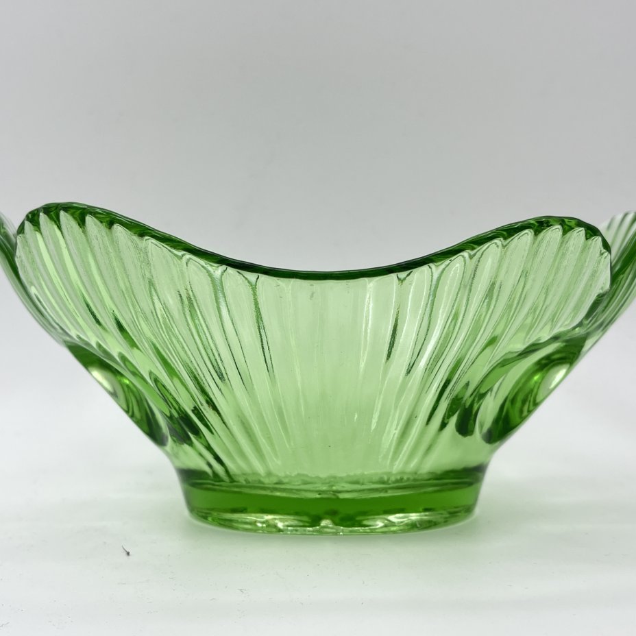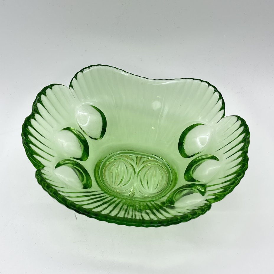 Вазочка (конфетница) зеленого оттенка с фигурными краями, стекло, СССР, 1970-1990 гг.