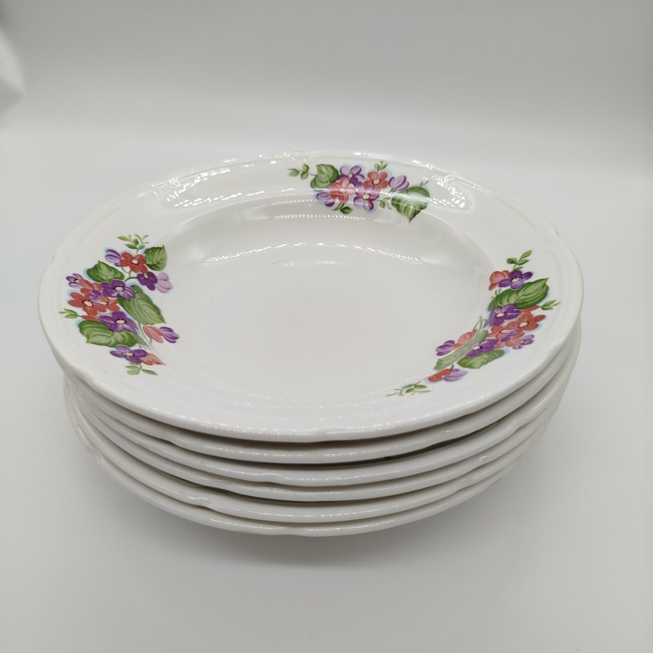 Набор из 6 суповых тарелок с цветочным декором, фаянс, деколь, Конаковский фаянсовый завод им. М.И. Калинина (ЗиК Конаково), СССР, 1974-1991 гг.