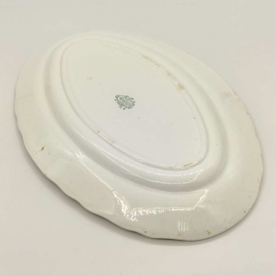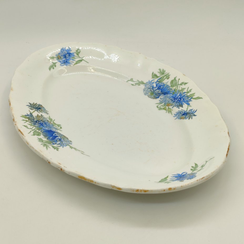 Большое сервировочное блюдо овальной формы, украшенное флоральным декором, фаянс, роспись, Конаковский фаянсовый завод им. М.И. Калинина (ЗиК Конаково), СССР, 1952-1962 гг.