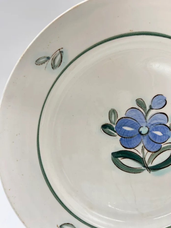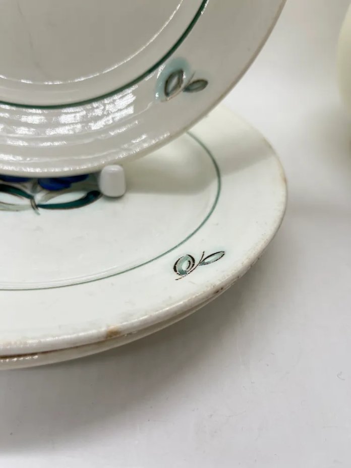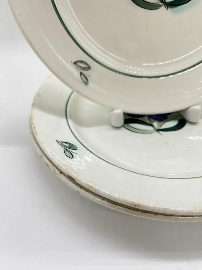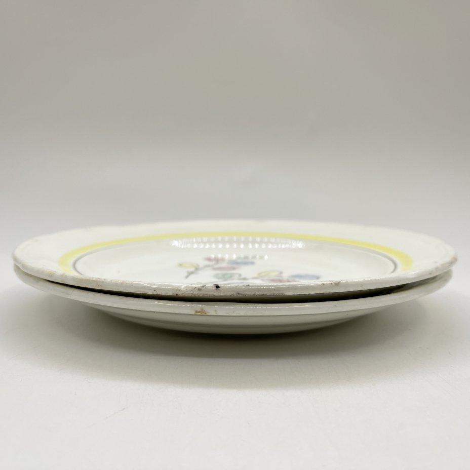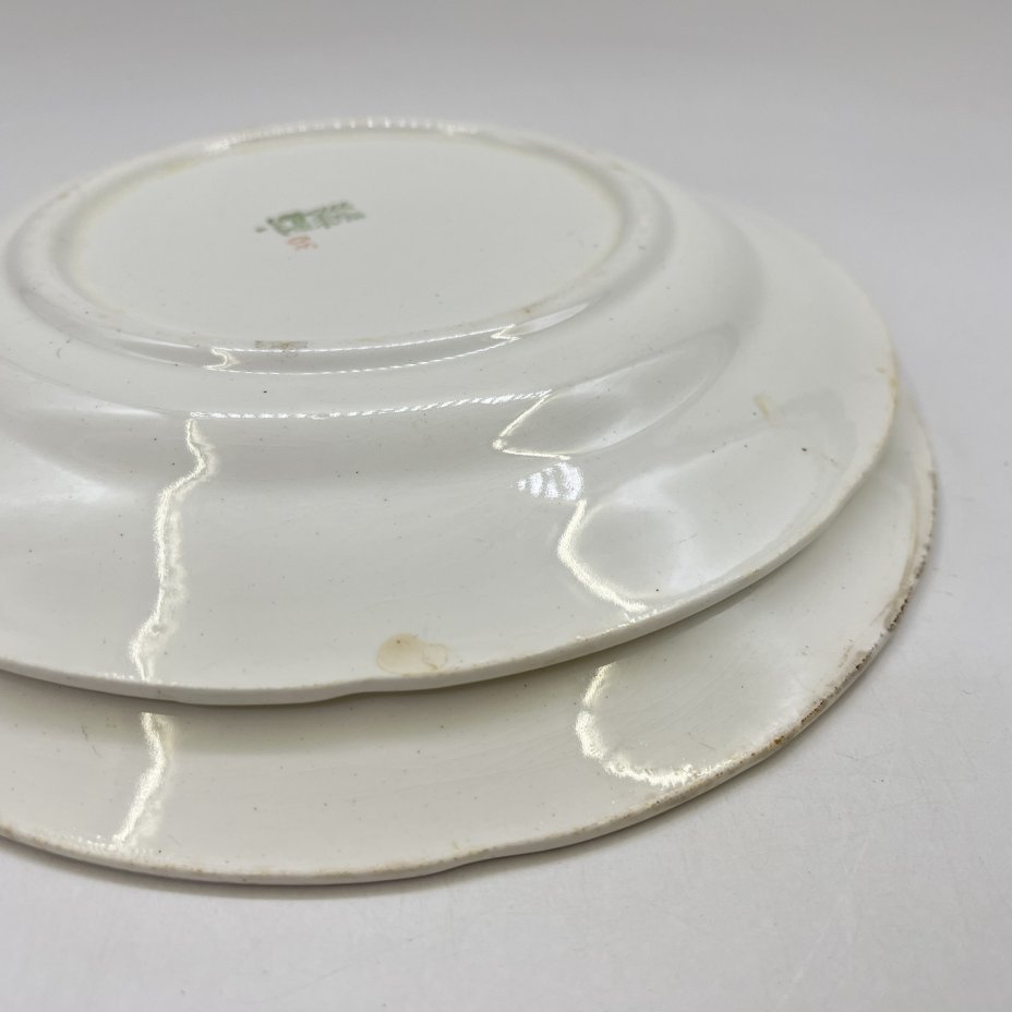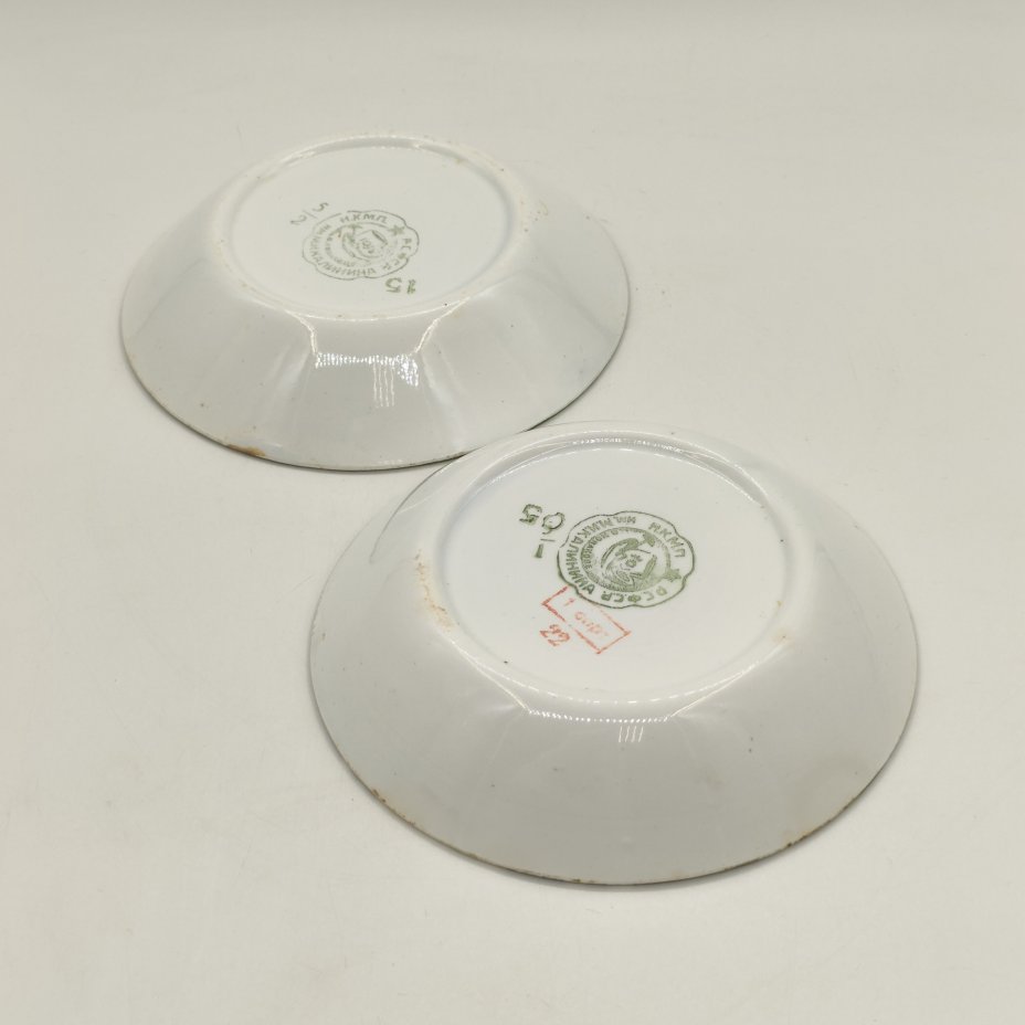 Пара розеток (блюдец) с цветочным декором, фаянс, деколь, обводка, Конаковский фаянсовый завод им. М.И. Калинина (ЗиК Конаково), СССР, 1934-1940 гг.