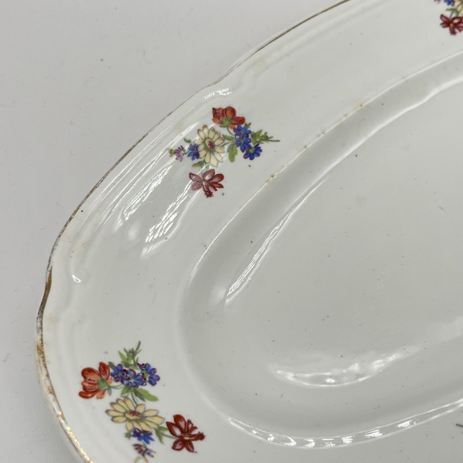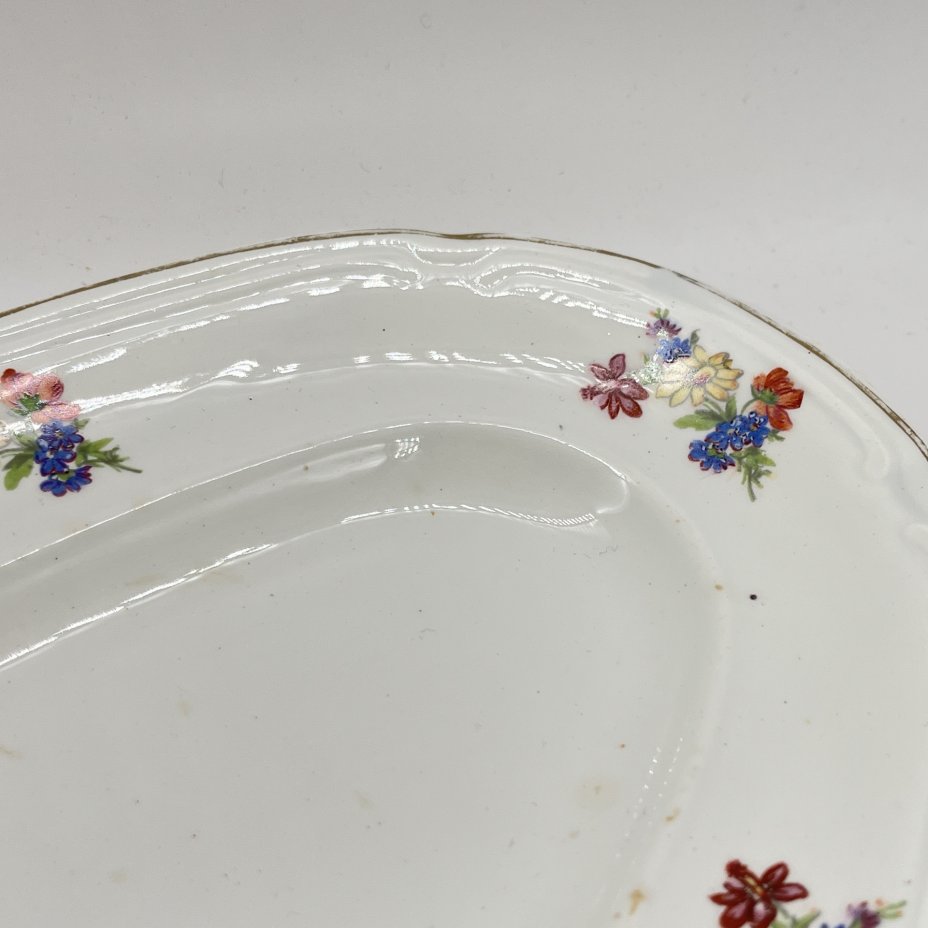 Блюдо овальной формы с цветочным декором, фаянс, деколь, золочение, Конаковский фаянсовый завод им. М.И. Калинина (ЗиК Конаково), СССР, 1952-1962 гг.