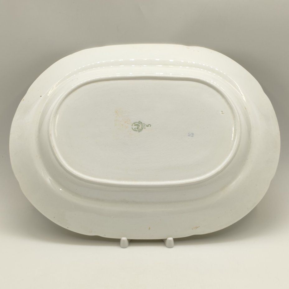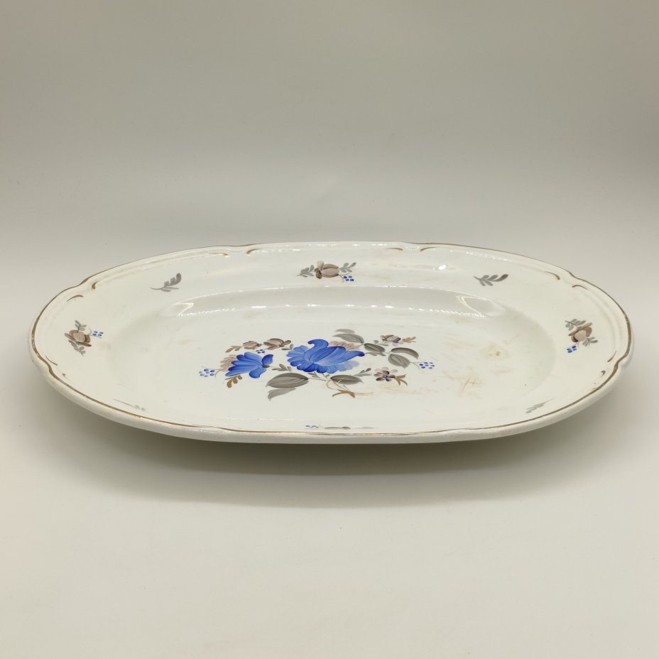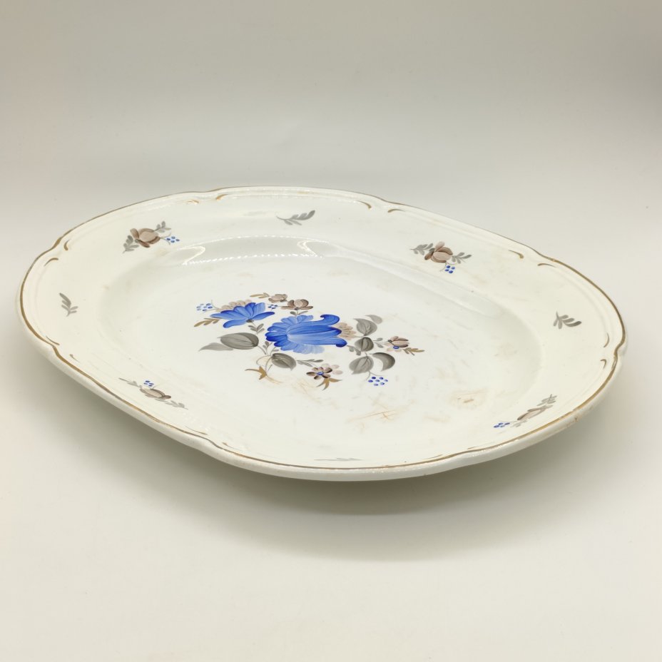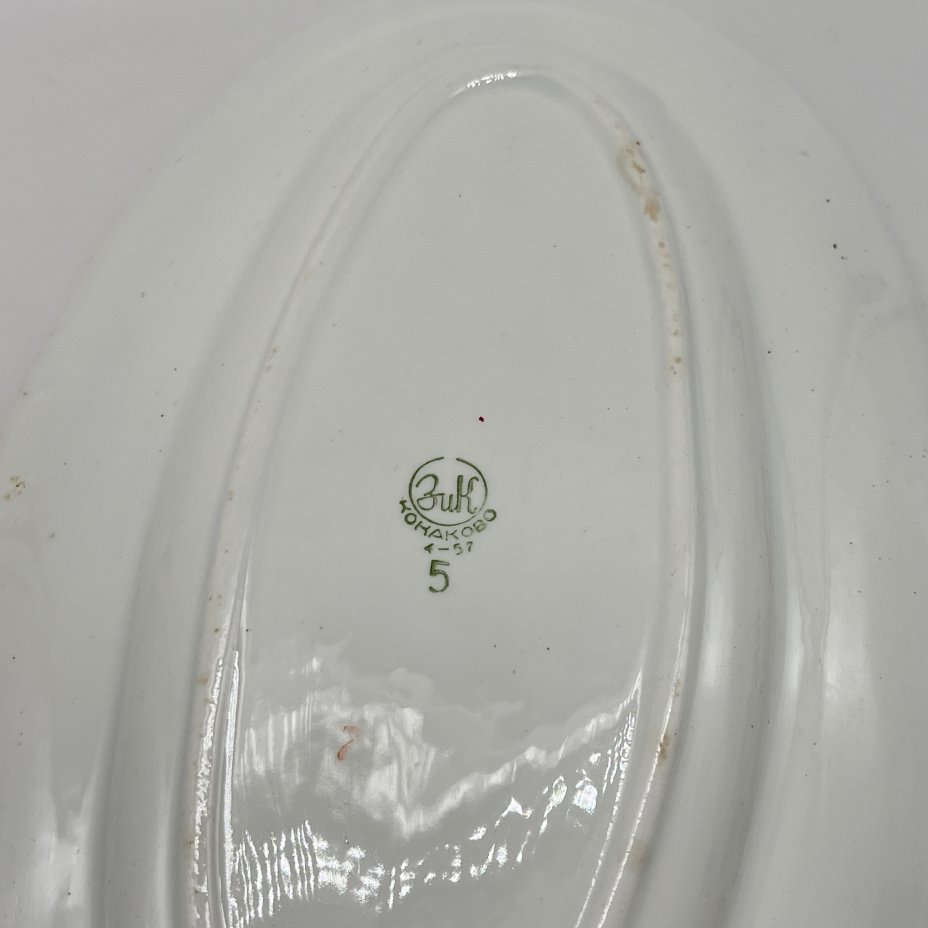 Большое сервировочное блюдо овальной формы, украшенное флоральным декором, фаянс, роспись, Конаковский фаянсовый завод им. М.И. Калинина (ЗиК Конаково), СССР, 1952-1962 гг.