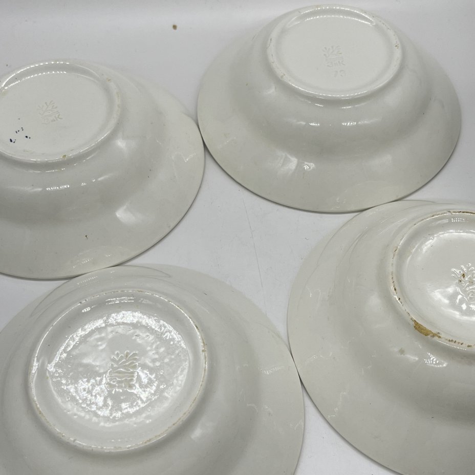 Набор из 4-х десертных тарелок, украшенных цветочным декором, фаянс, деколь, роспись, Конаковский фаянсовый завод им. М.И. Калинина (ЗиК Конаково), СССР, 1934-1940 гг.
