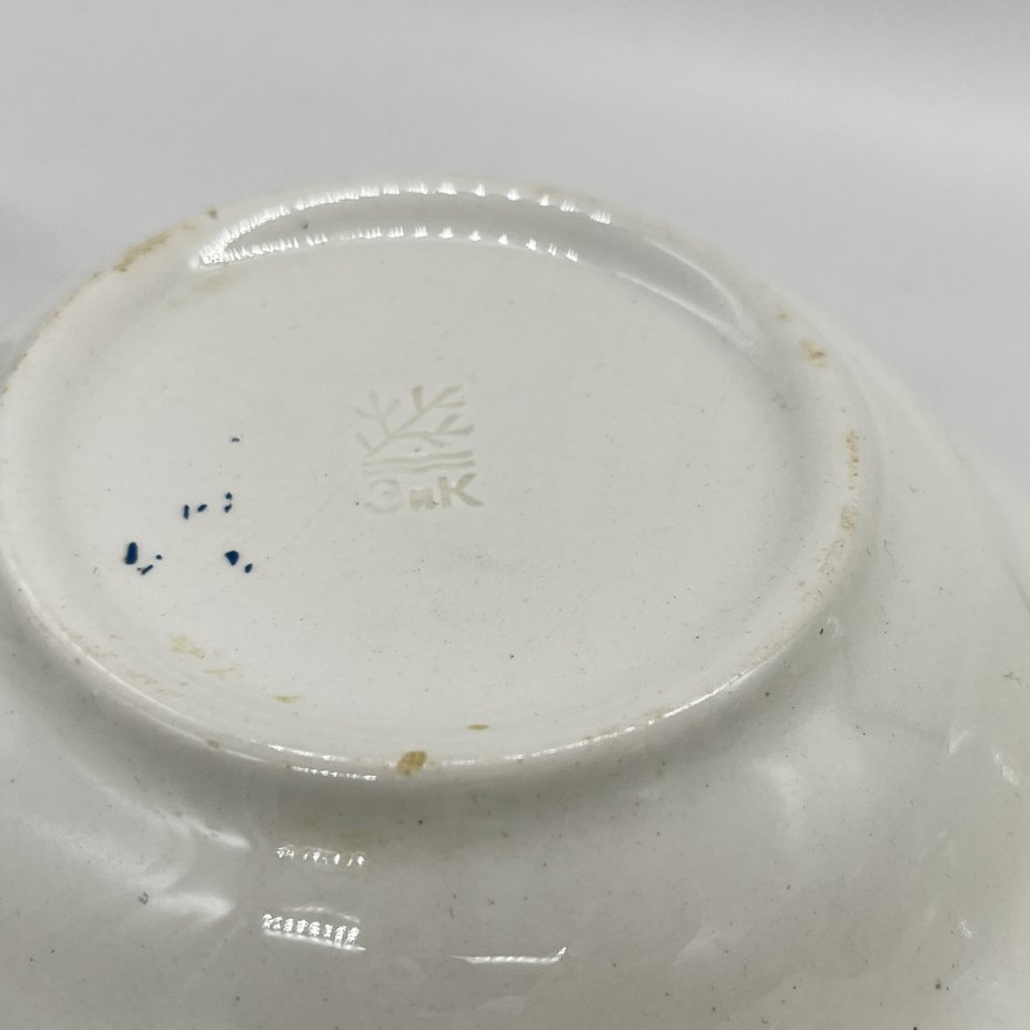 Пара блюдец с растительным декором, фаянс, деколь, Конаковский фаянсовый завод им. М.И. Калинина (ЗиК Конаково), СССР, 1974-1991 гг.