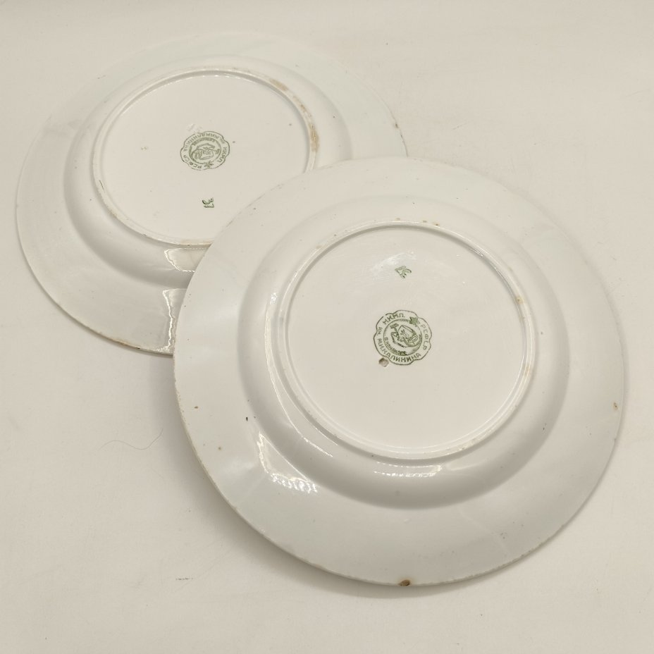 Пара тарелок с цветочным декором, фаянс, Конаковский фаянсовый завод им. М.И. Калинина (ЗиК Конаково), СССР, 1960-1990 гг.
