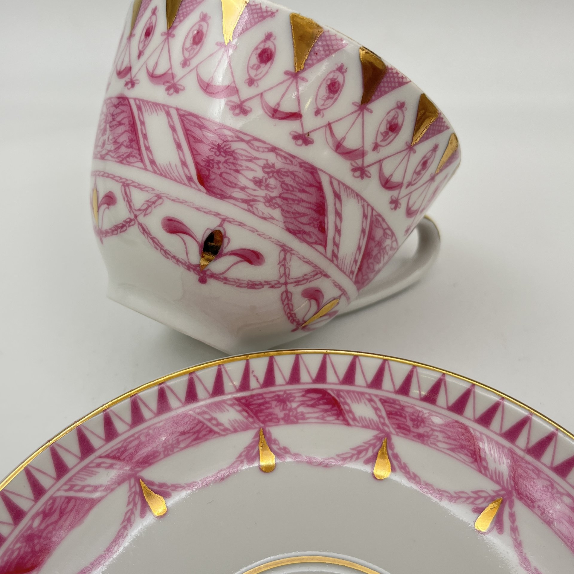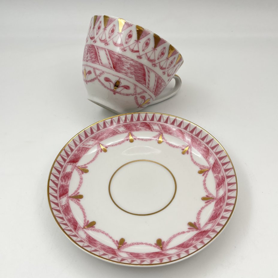 Пара чайная "Сад" с золотистой каймой, фарфор, золочение, Императорский фарфоровый завод (ИФЗ), СССР, 2006-2023 гг.