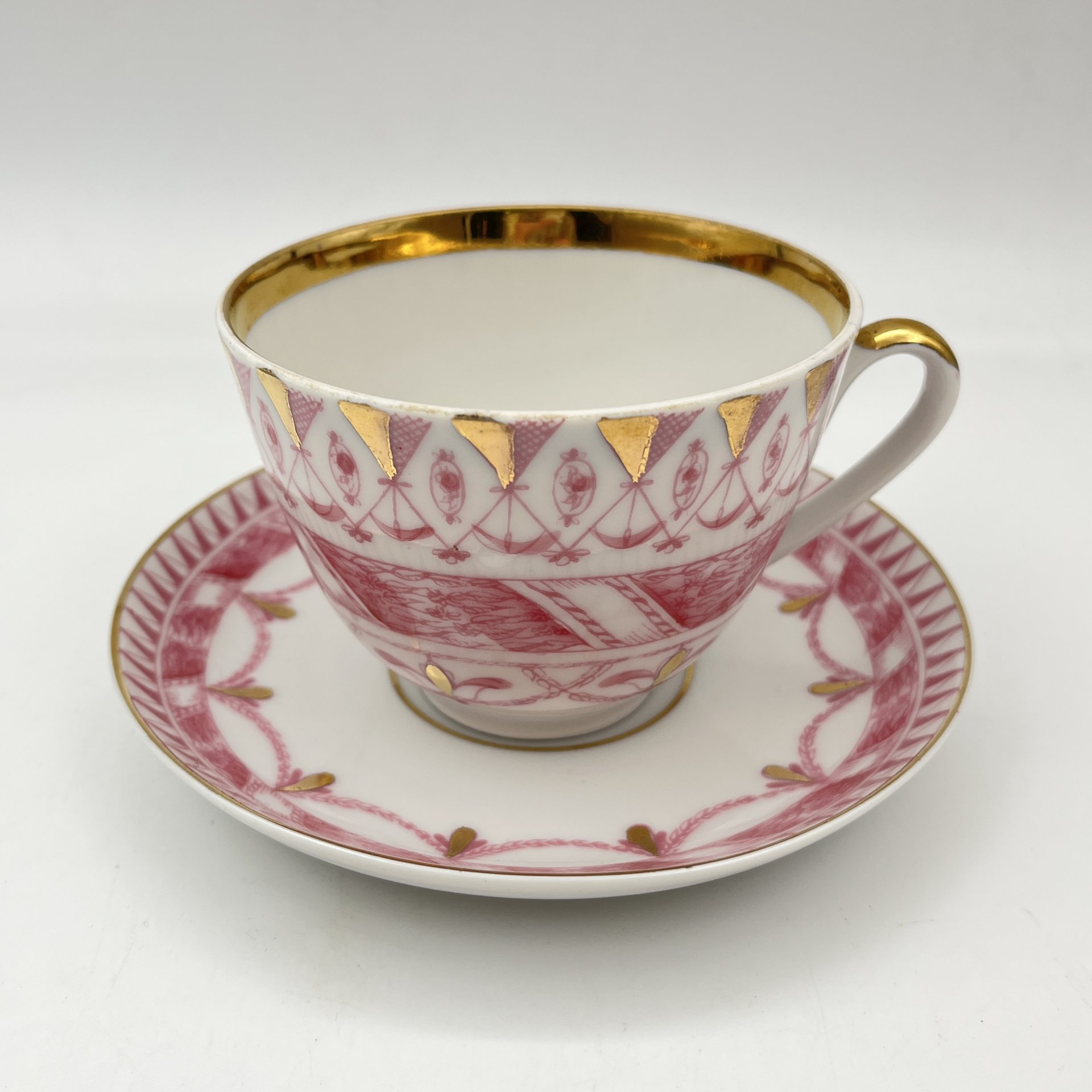 Купить Пара чайная "Сад" с золотистой каймой, фарфор, золочение, Императорский фарфоровый завод (ИФЗ), СССР, 2006-2023 гг.