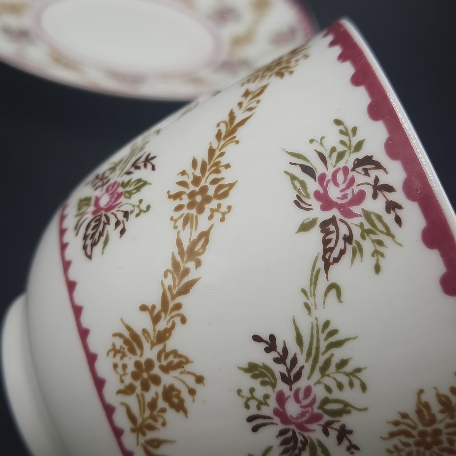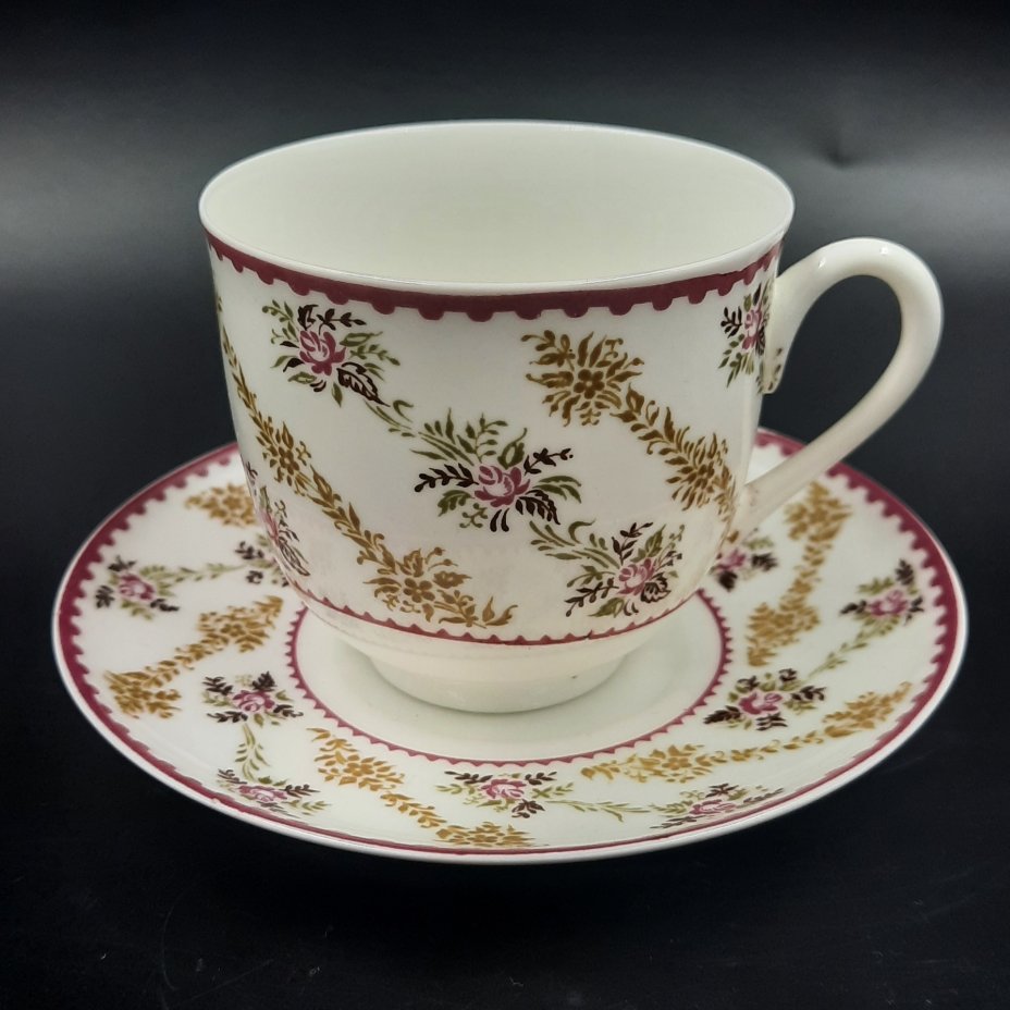 Пара кофейная "Розовые веточки" ("Золотые бабочки"), форма "Майская", автор формы Э.М. Криммер, автор рисунка В.Г. Богданов, фарфор, деколь, золочение, Ленинградский фарфоровый завод (ЛФЗ), СССР, 1970-1992 гг.