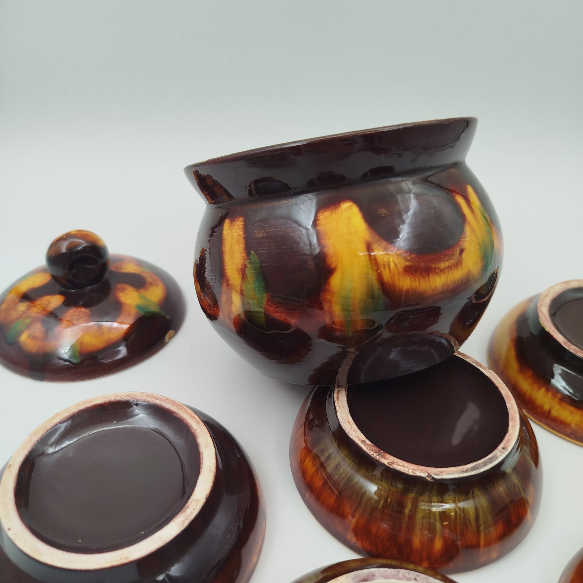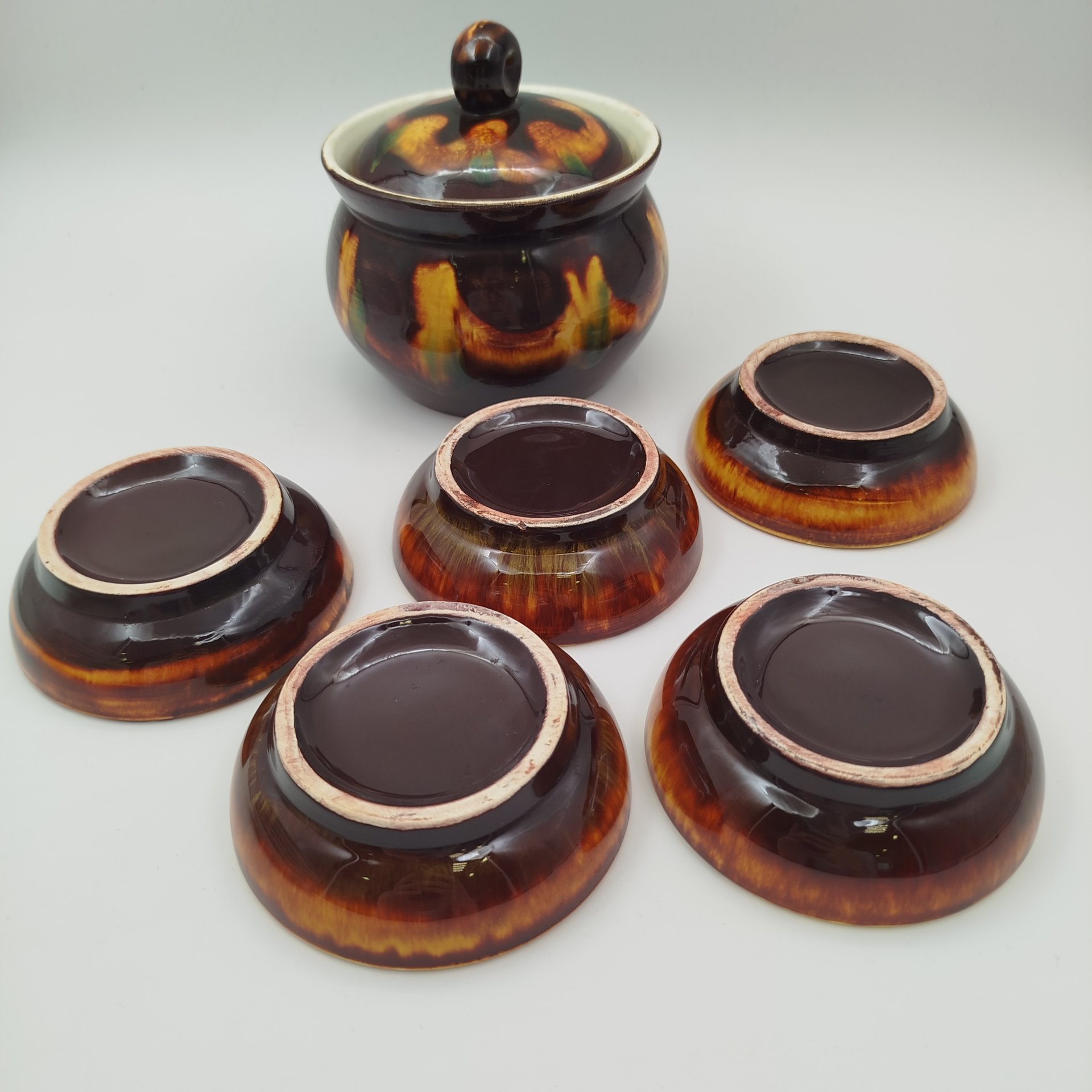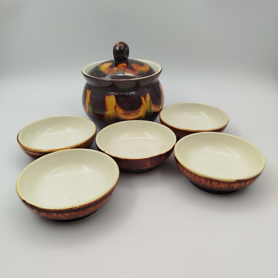 Набор для подачи варенья ( 5 розеток и бочонок), фаянс, поливы, Конаковский фаянсовый завод им. М.И. Калинина (ЗиК Конаково), СССР, 1974-1991 гг.