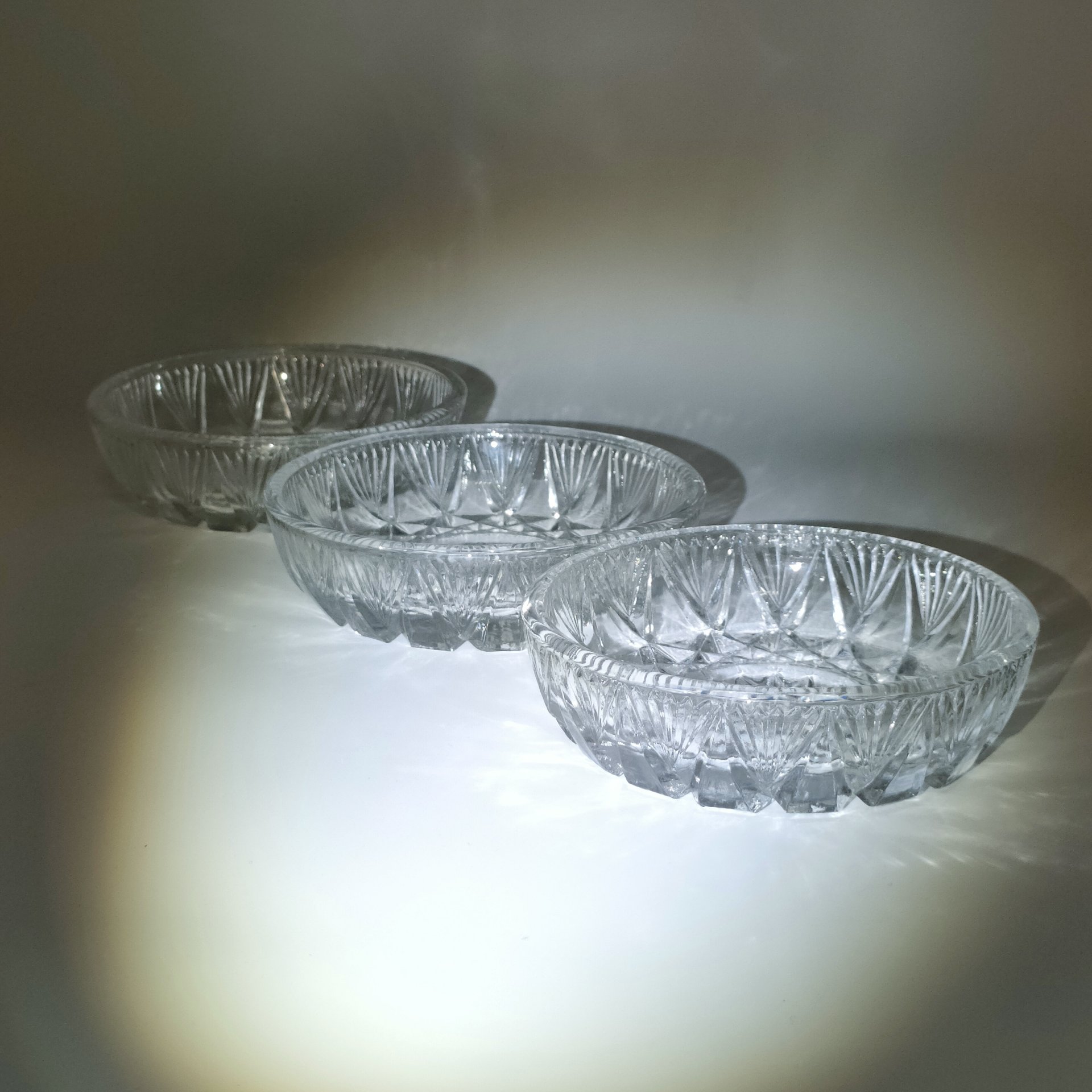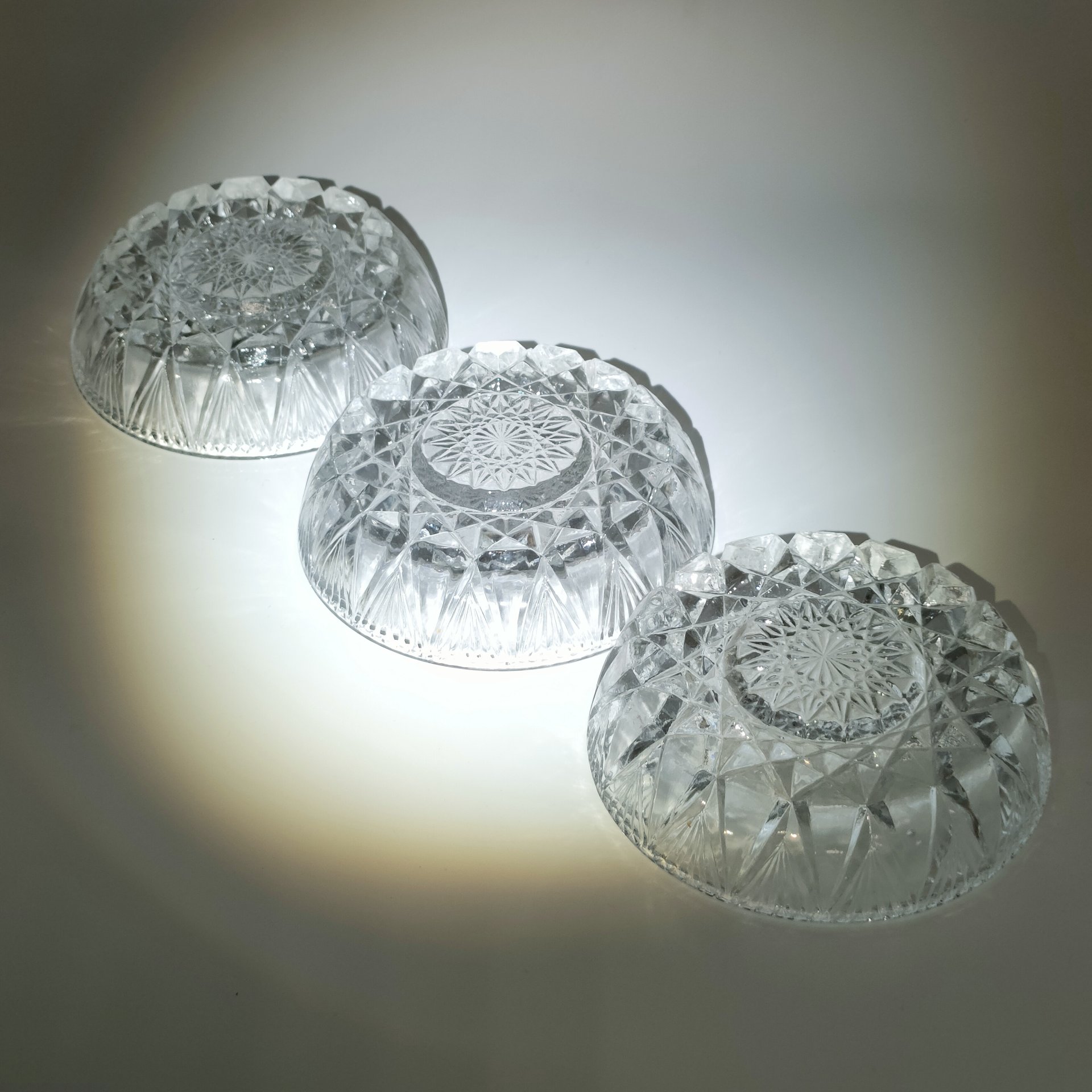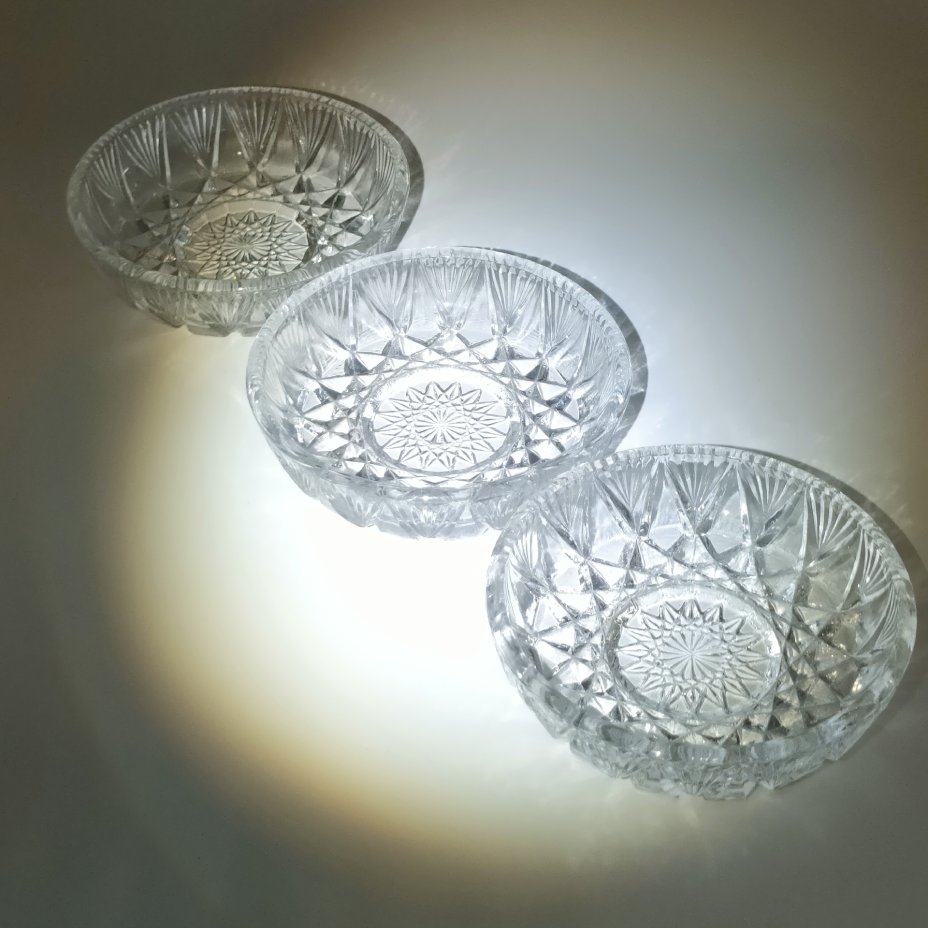 Набор из 3-х розеток с резным геометрическим декором, хрусталь, алмазная грань, СССР, 1970-1990 гг.
