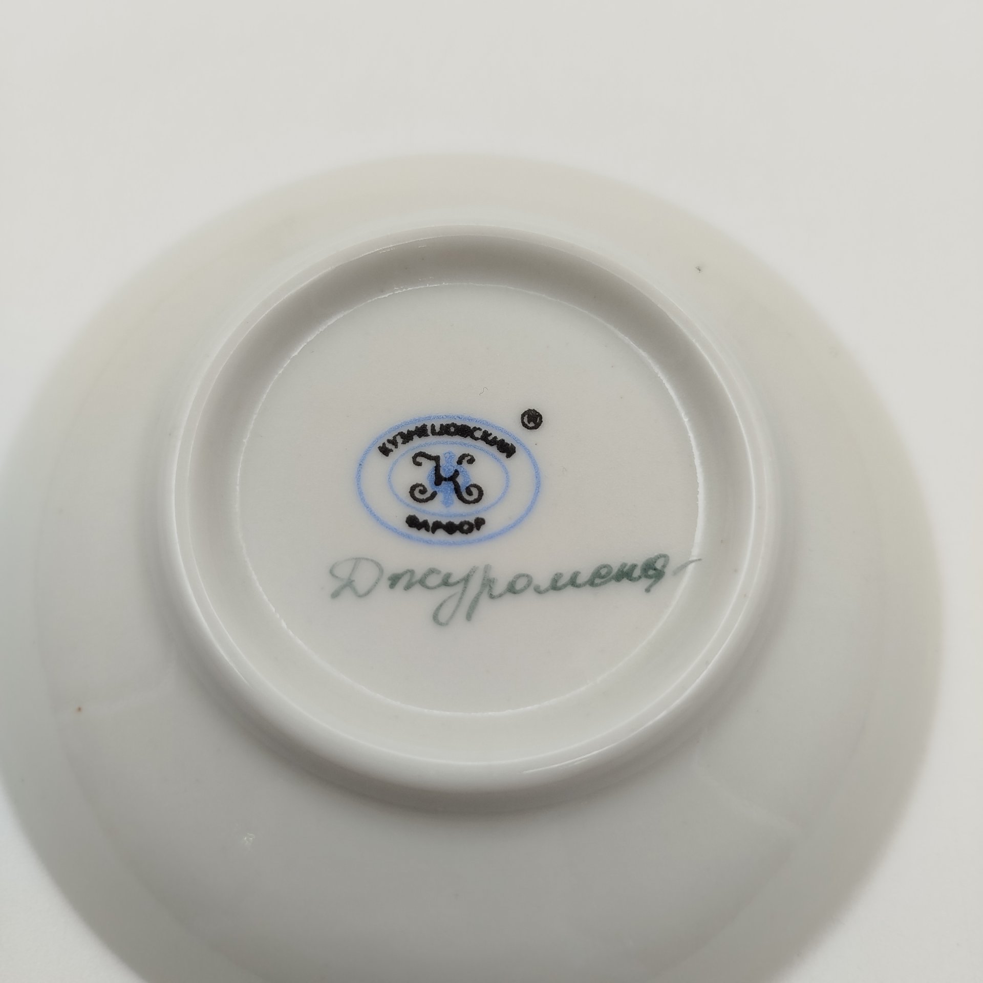 Купить Пара розеток (блюдец) с цветочным декором, фаянс, деколь, обводка, Конаковский фаянсовый завод им. М.И. Калинина (ЗиК Конаково), СССР, 1934-1940 гг.