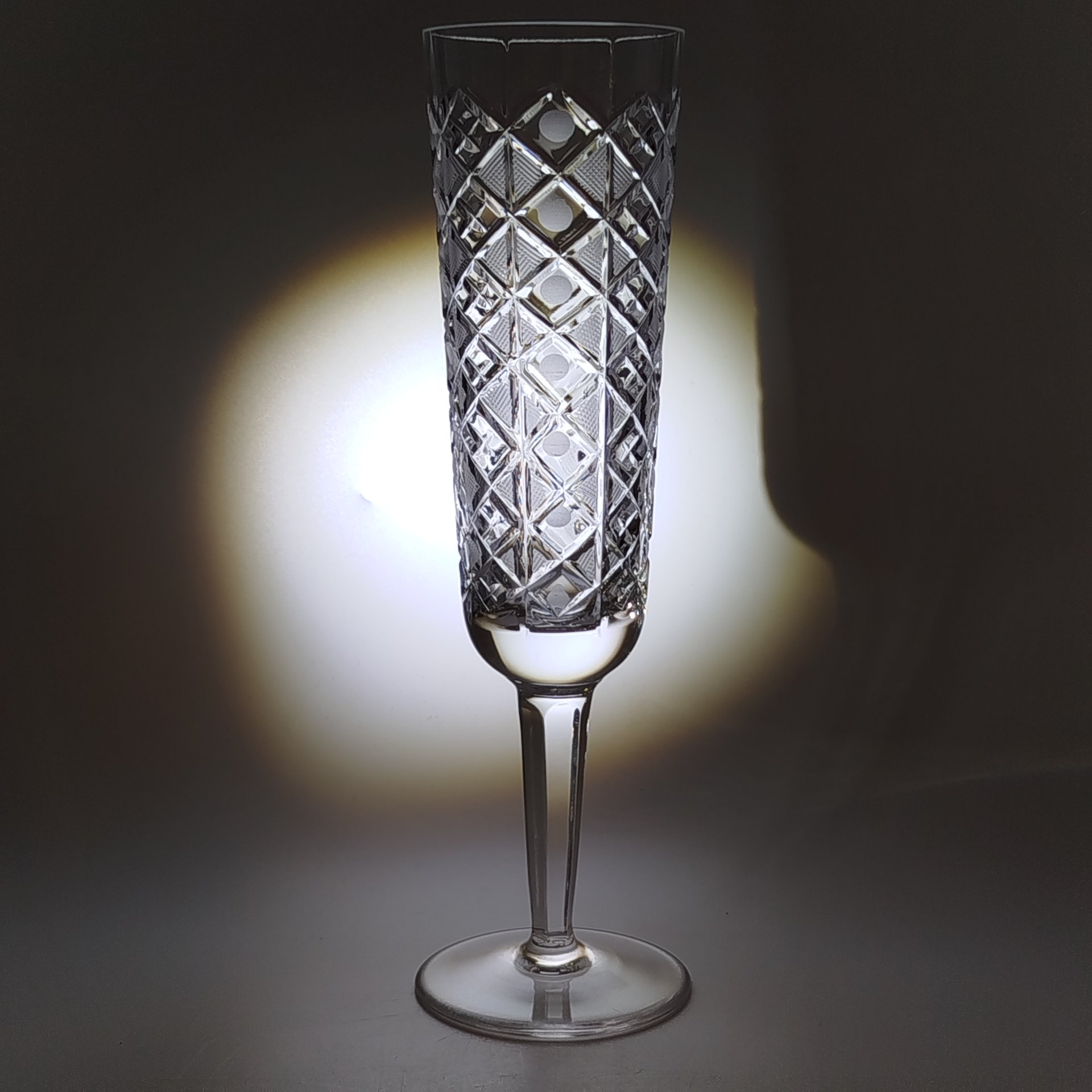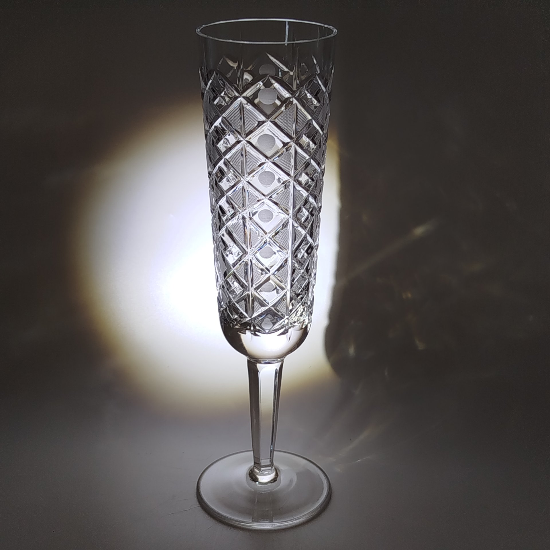 Фужер с рельефным геометрическим декором, хрусталь, алмазная грань, матирование, СССР, 1970-1990 гг.