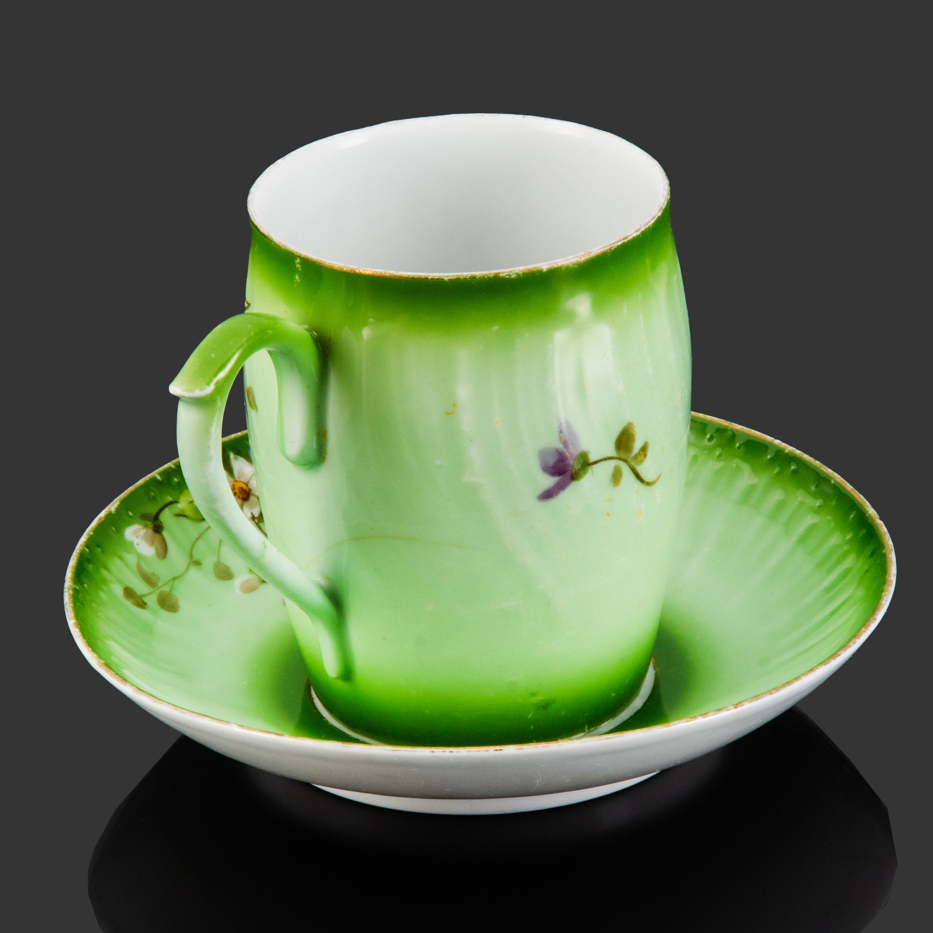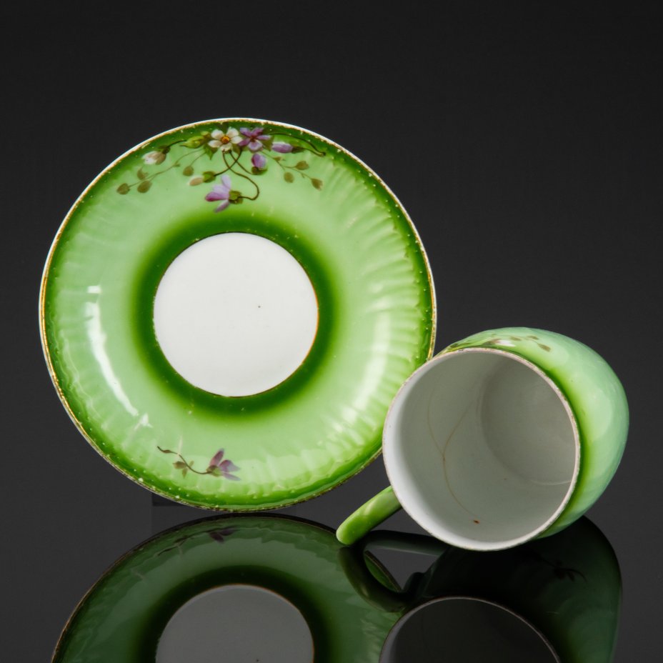 Пара кофейная с декором в виде гирлянд (форма "Волна"), фарфор, деколь, Ленинградский фарфоровый завод (ЛФЗ), СССР, 1970-1992 гг.