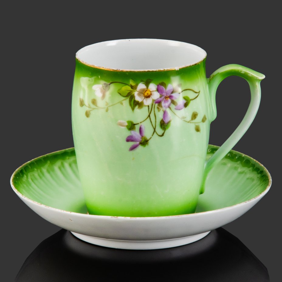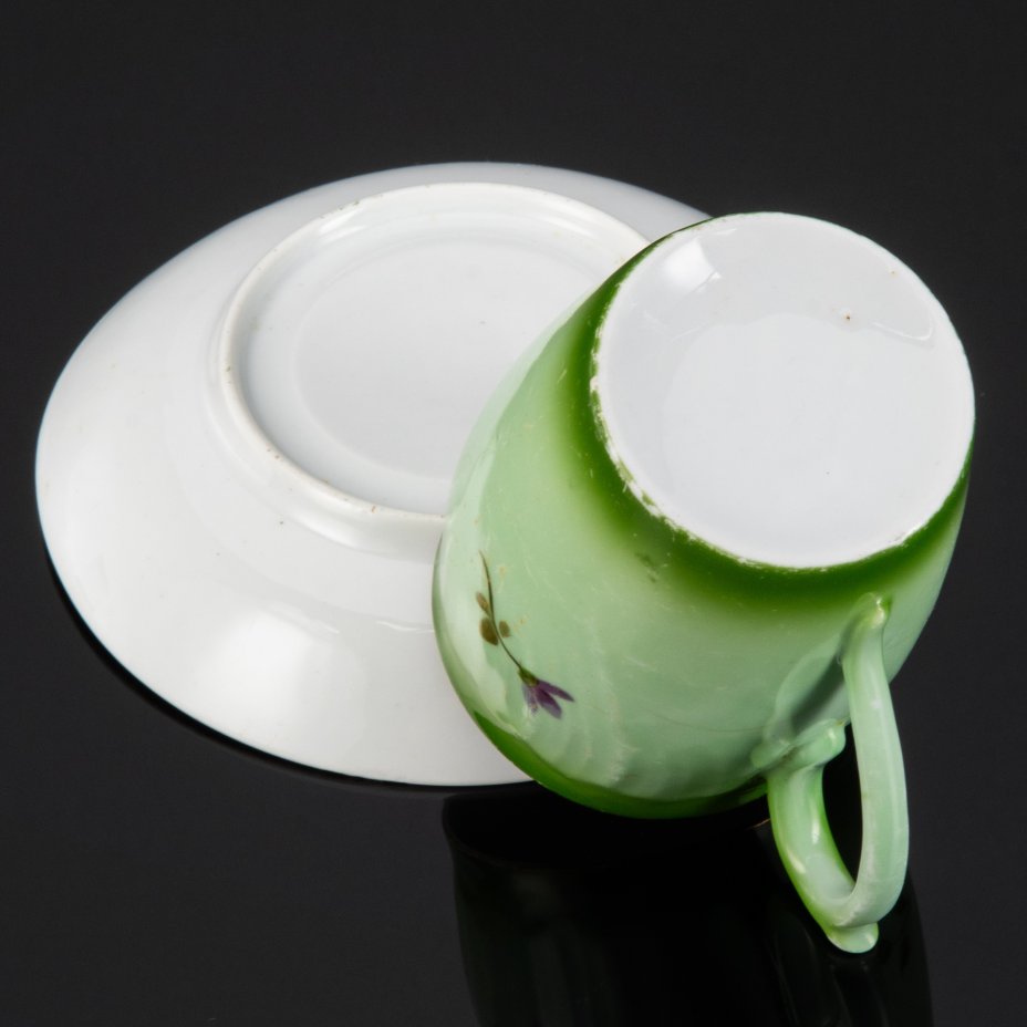 Чайная пара с цветочным декором, фарфор, крытье, деколь с дорисовкой, золочение, Дмитровский фарфоровый завод (ДФЗ Вербилки), СССР, 1917-1940 гг.