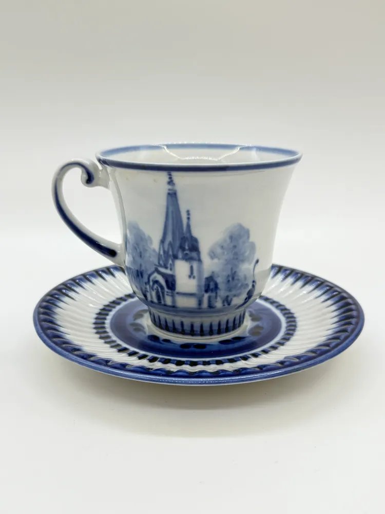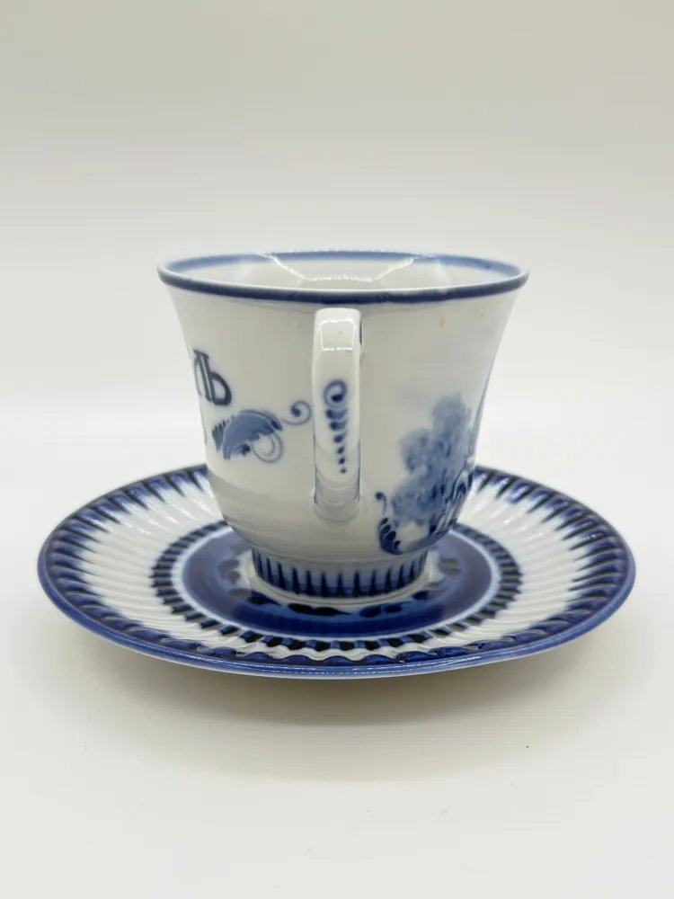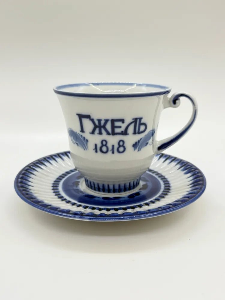 Чайная пара "Гжель 1818", Гжель, фарфор, роспись, Россия, 2000 г.