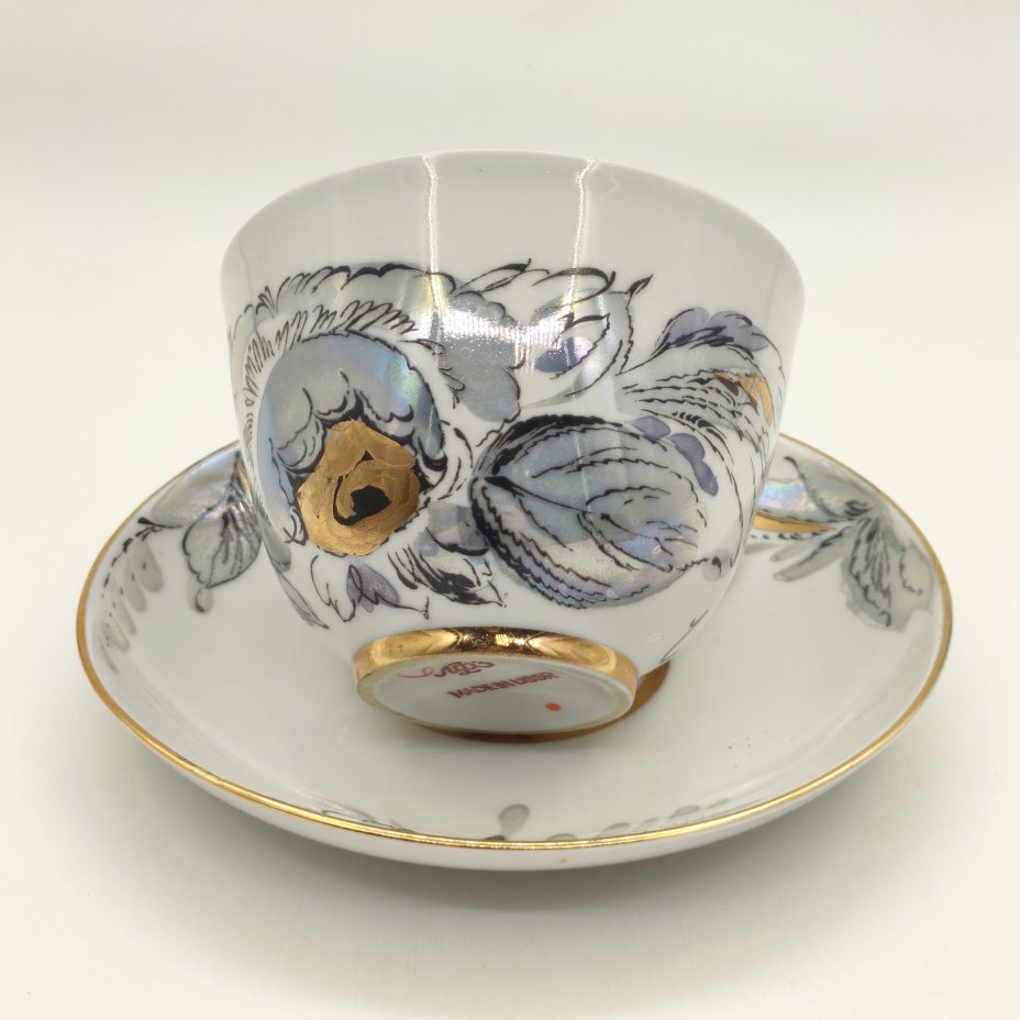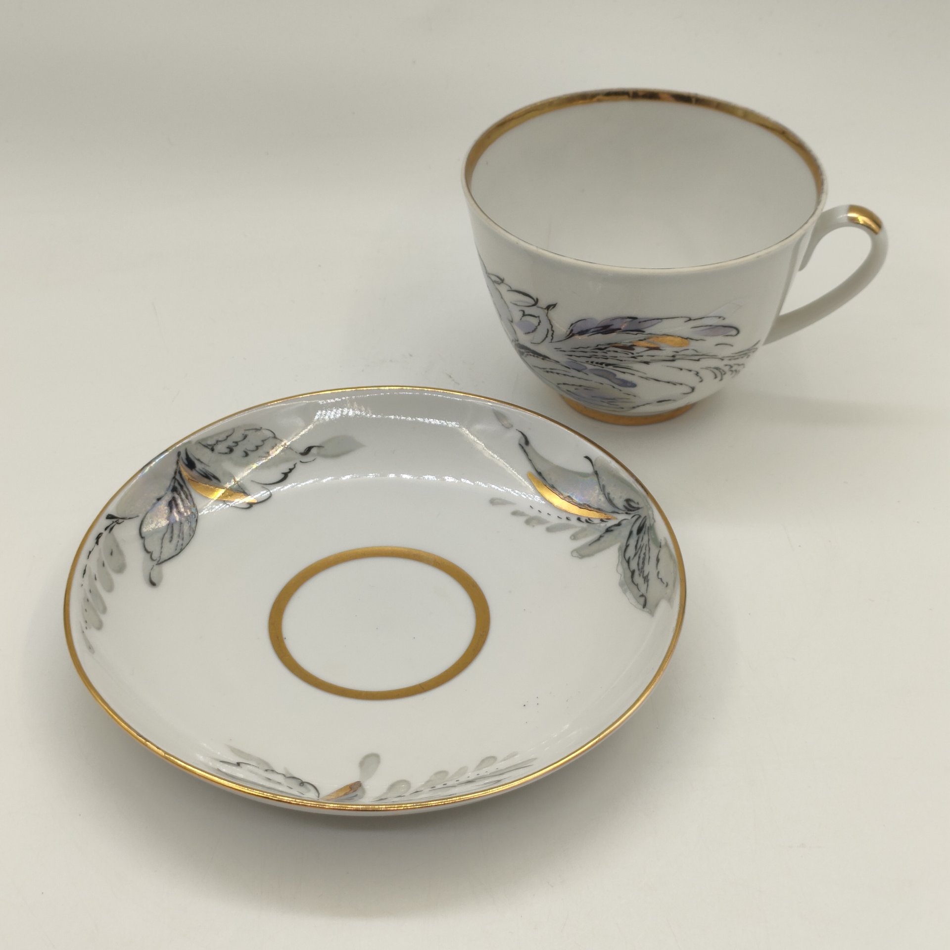 Купить Пара чайная "Сад" с золотистой каймой, фарфор, золочение, Императорский фарфоровый завод (ИФЗ), СССР, 2006-2023 гг.